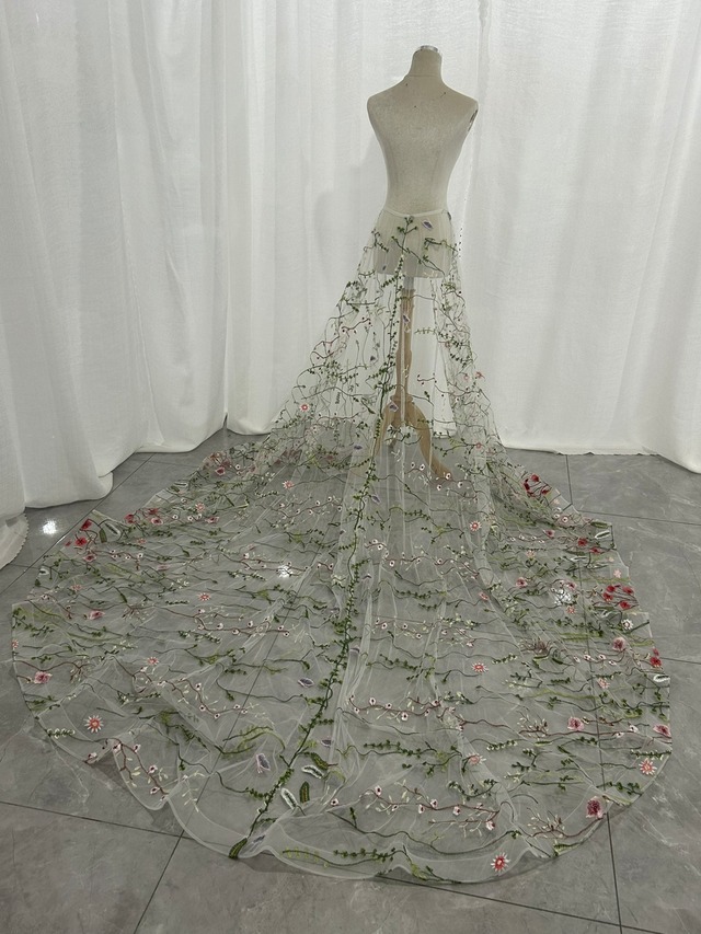花柄刺繍が美しく チュールスカート オーバードレス トレーンのみ 花嫁/ウェディン
