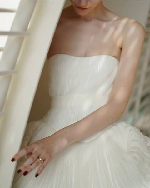 美品!ウエディングドレス ビスチェスタイル プリーツチュール ローウエスト ボリューミー 美しいボディーライン フェミニン【色変更可能】