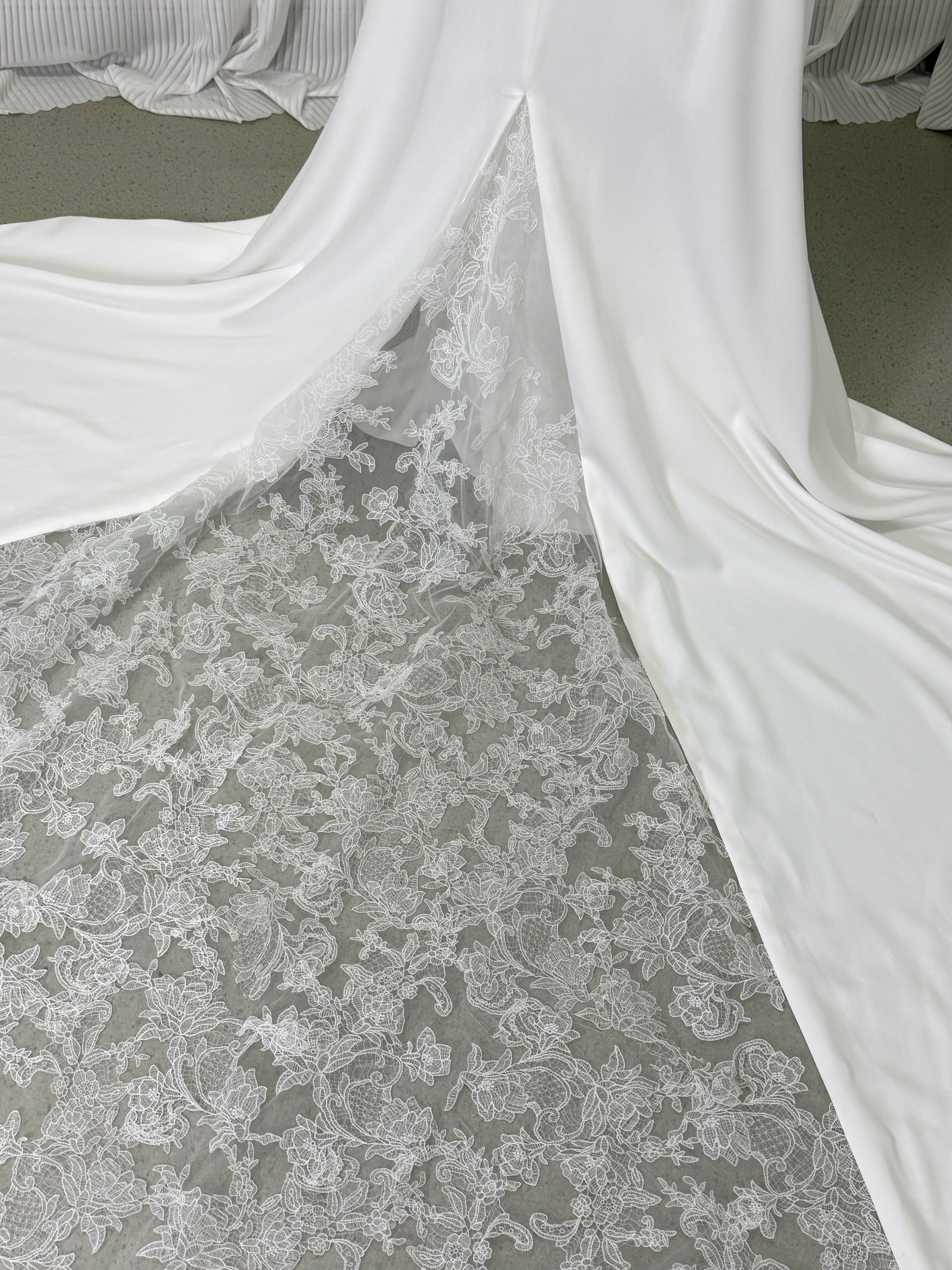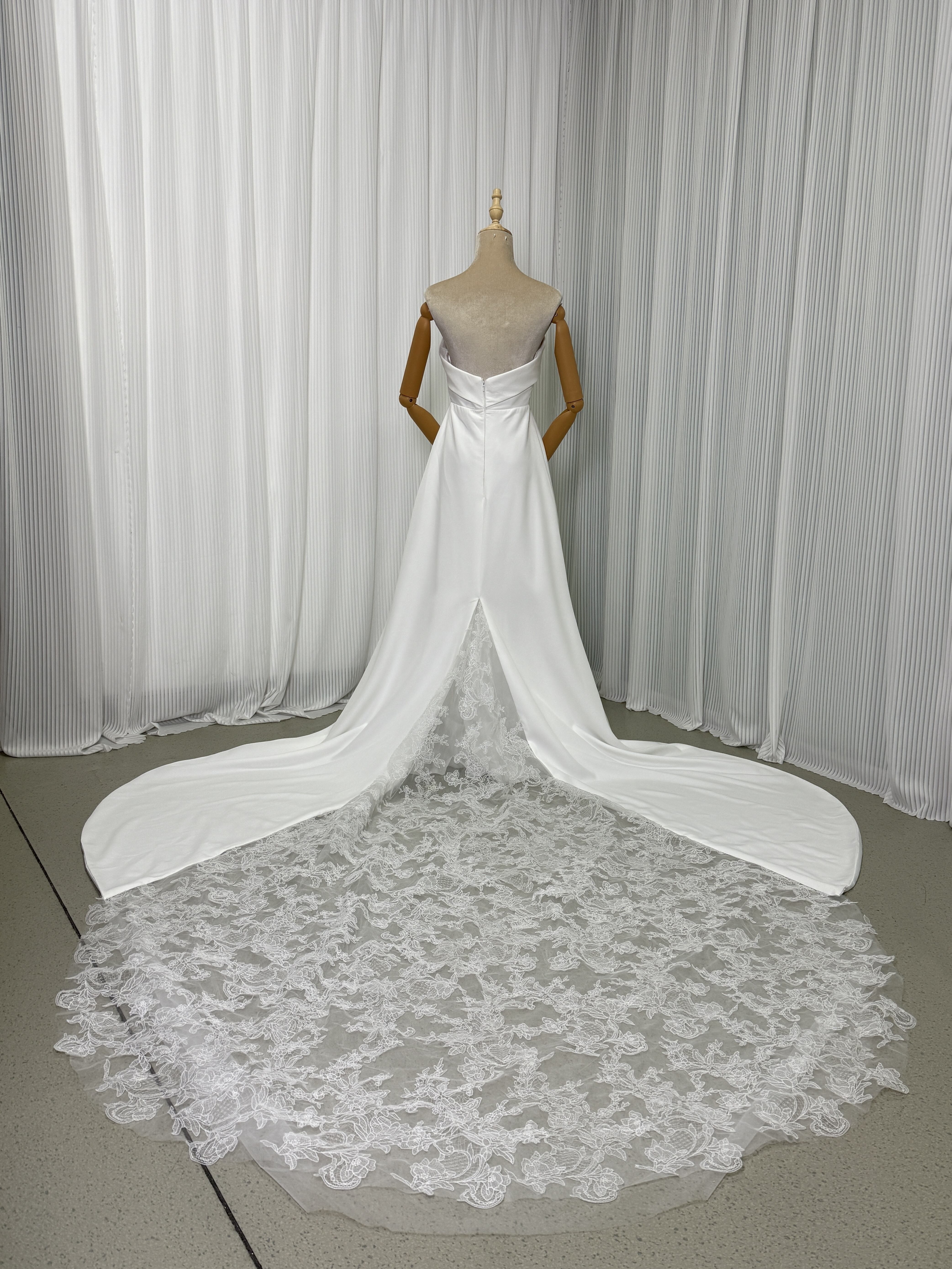 美品! ベアトップ ウエディングドレス ロングスリーブ 【色変更可能】華やかなトレーン
