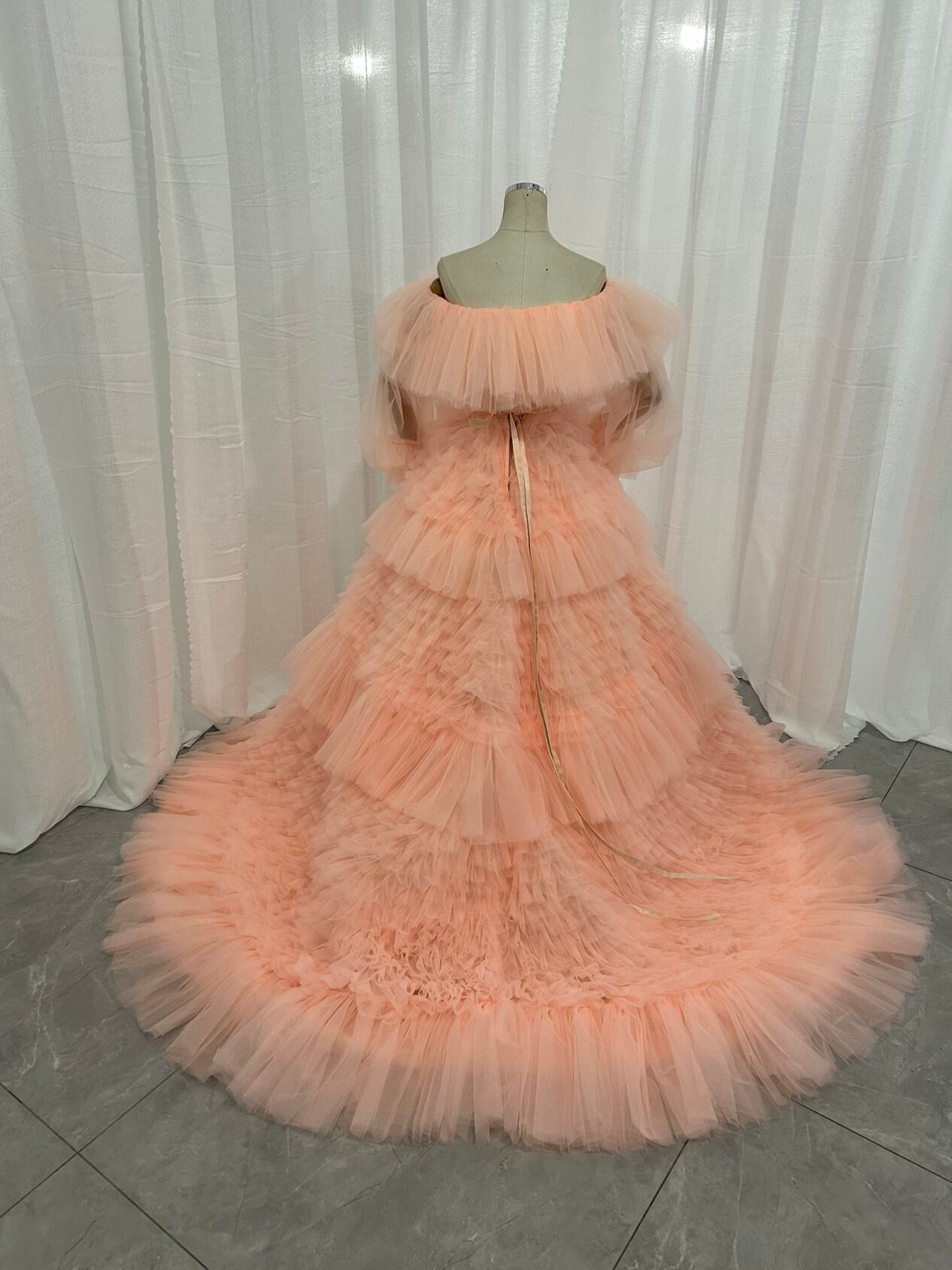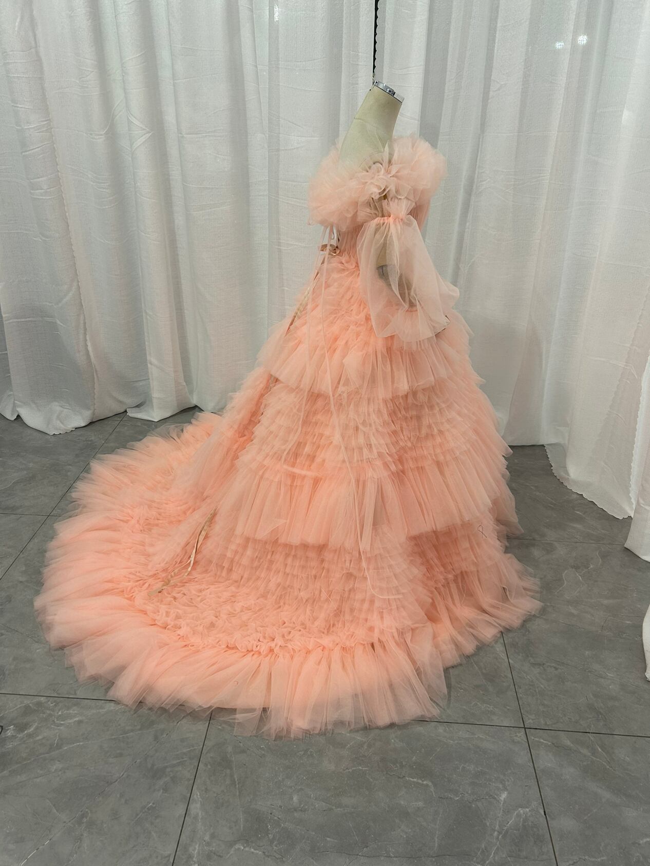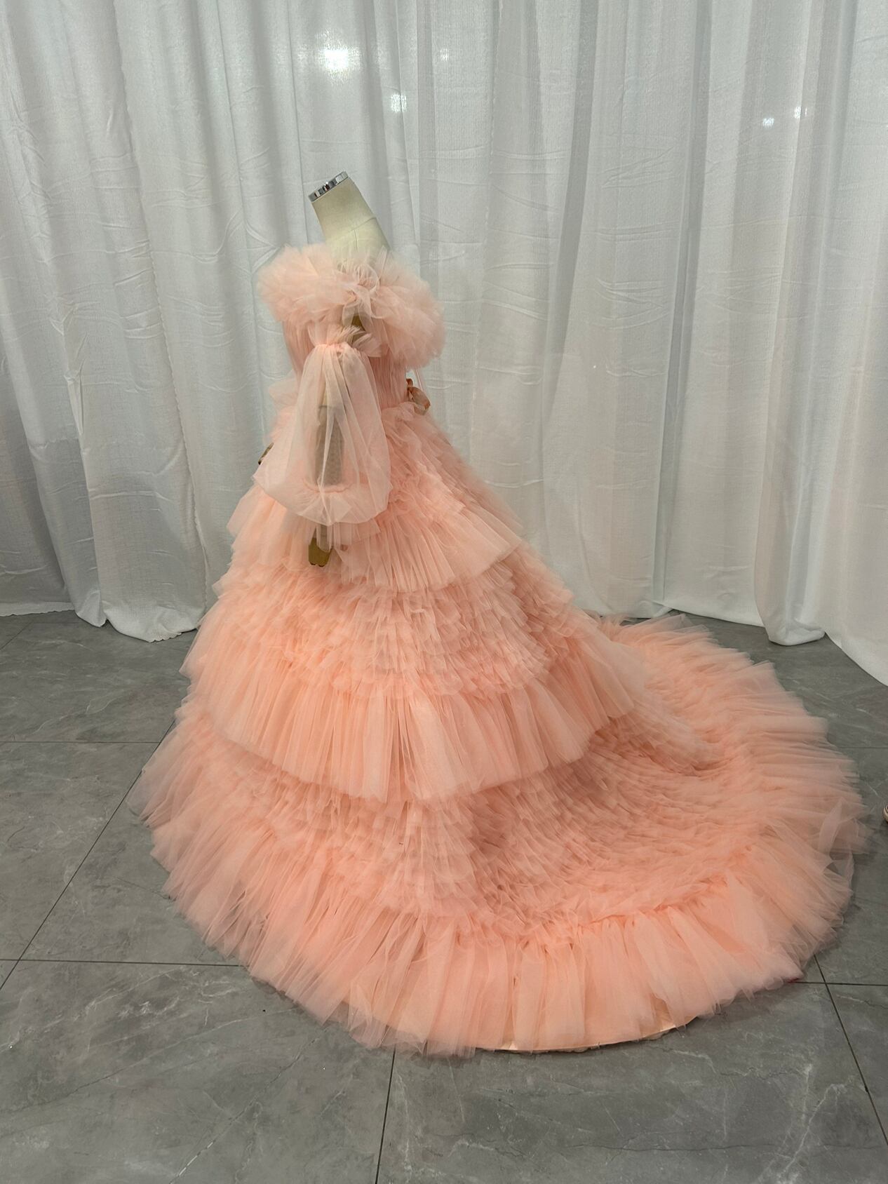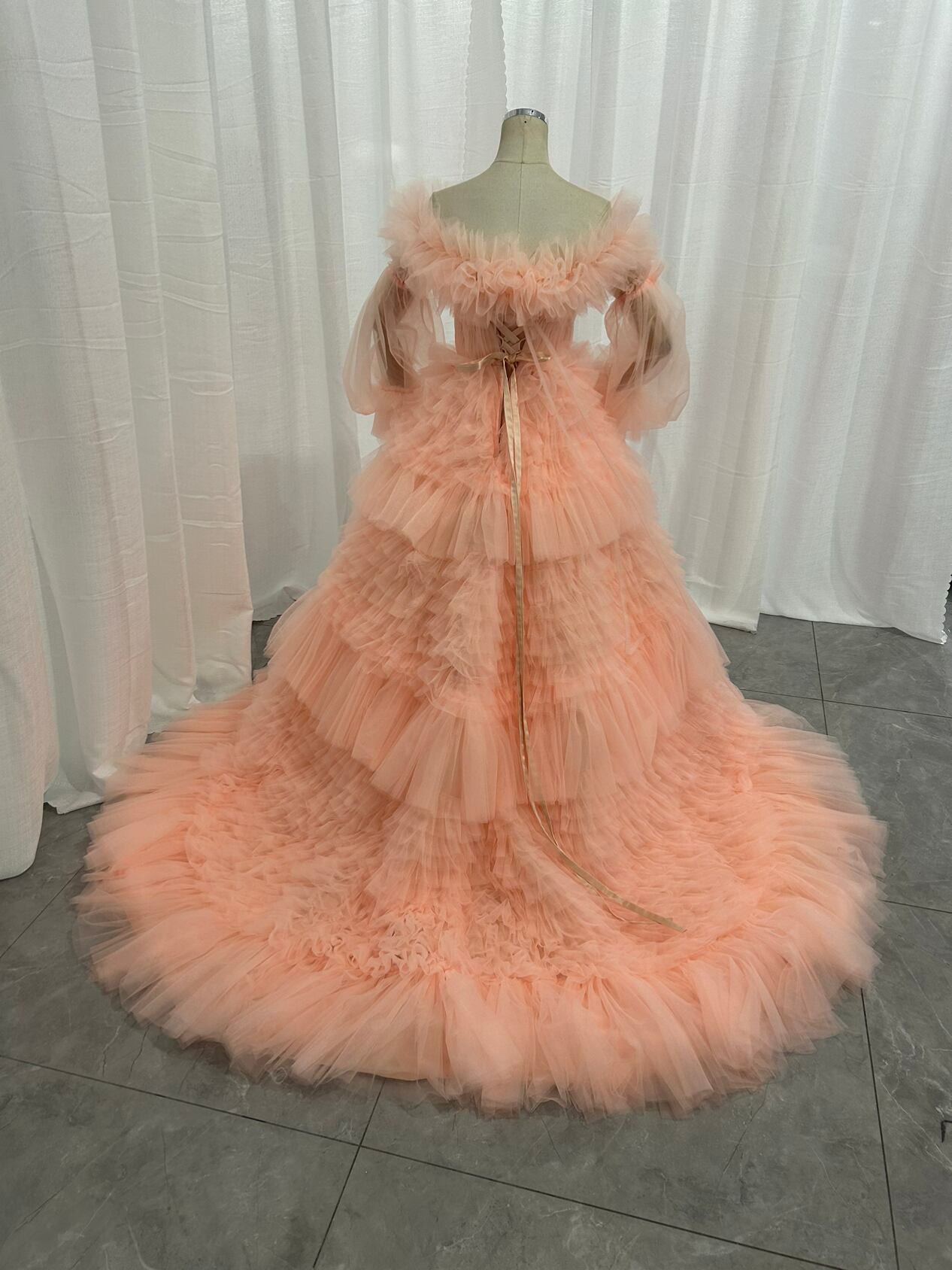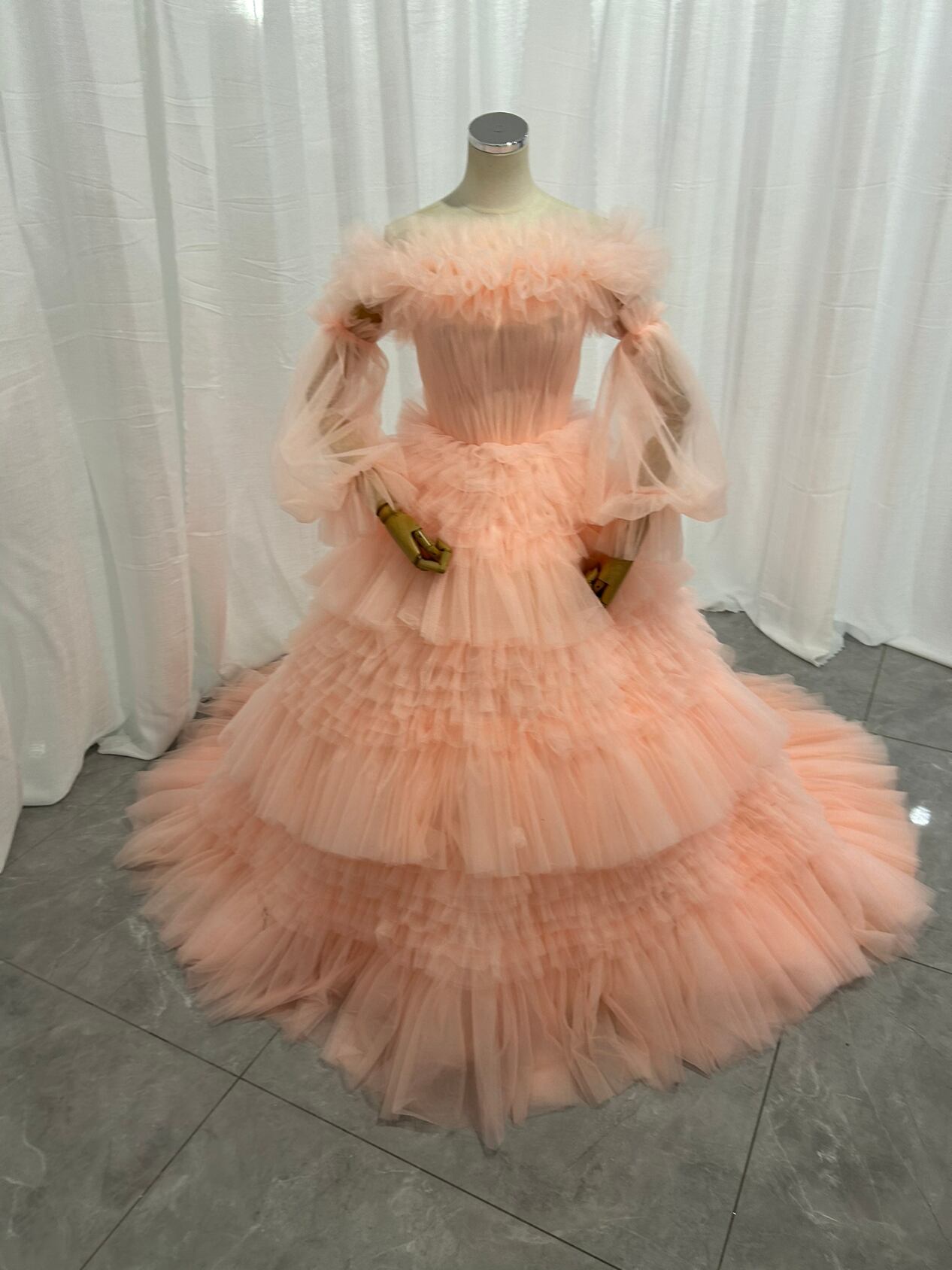 韓国風カラードレス パフスリーブ チュールドレス リボン ふわふわ ボリュームドレス +取り外し袖+ 取り外し襟