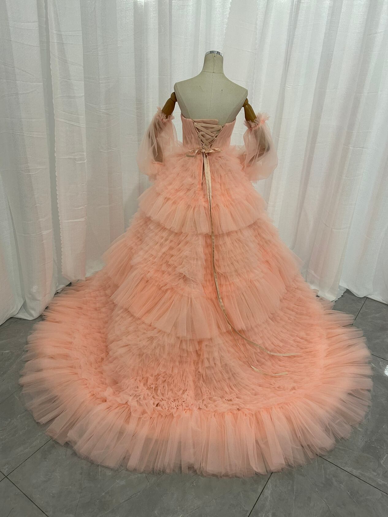 韓国風カラードレス パフスリーブ チュールドレス リボン ふわふわ ボリュームドレス +取り外し袖