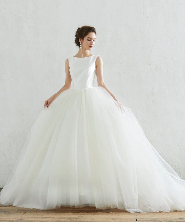 美品!ノースリーブ ウエディングドレス チュールスカート ボリューミー フェミニン イブニングドレス パーティードレス【色変更可能】