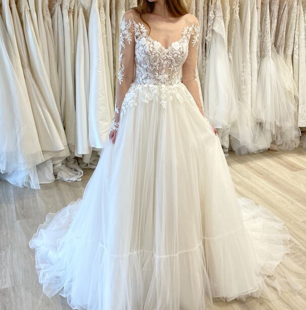 美品!ヨーロッパ風 繊細レーストップス ウエディングドレス スレンダーライン フェミニン イブニングドレス パーティードレス【オーダーメイド】