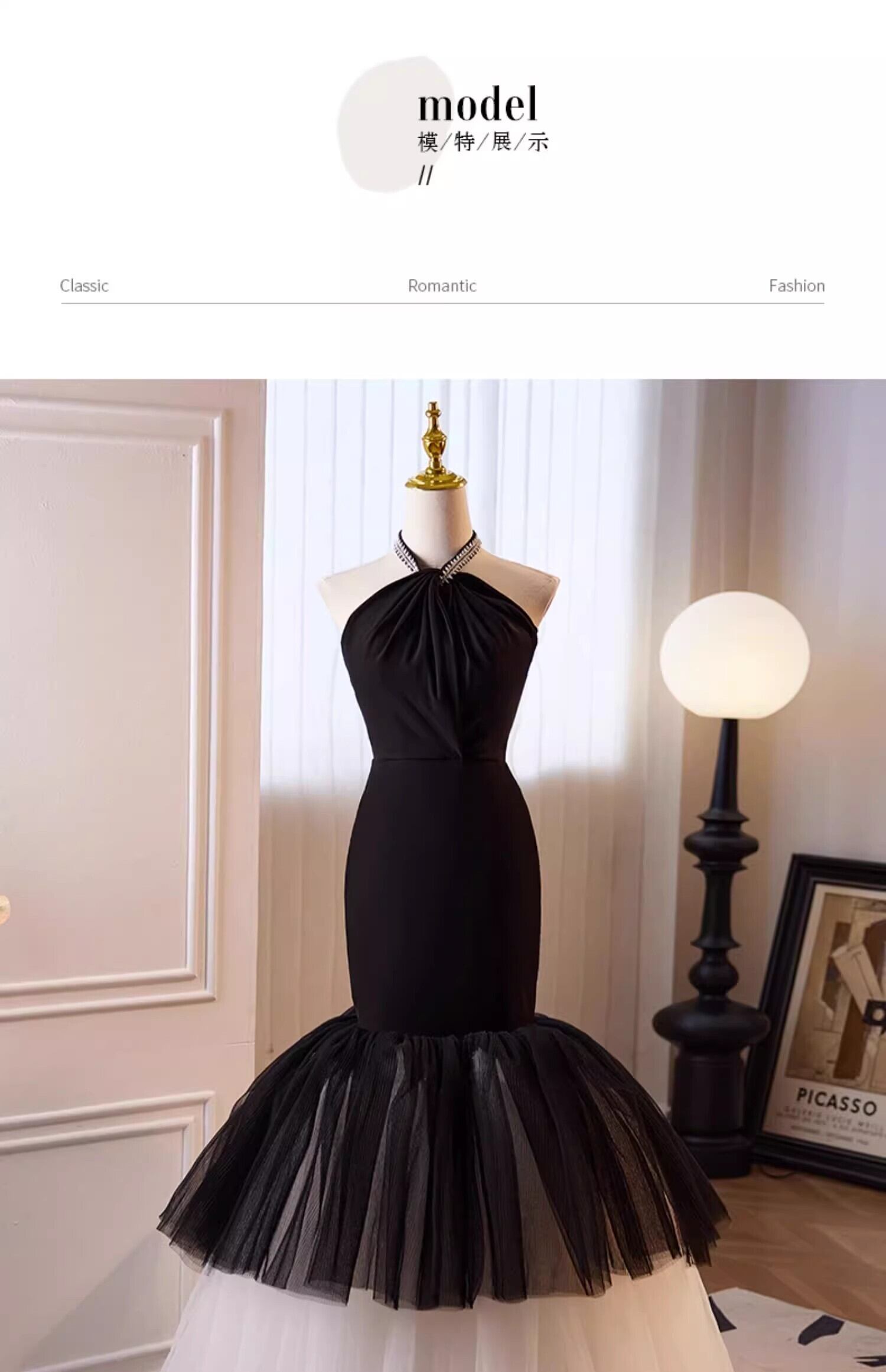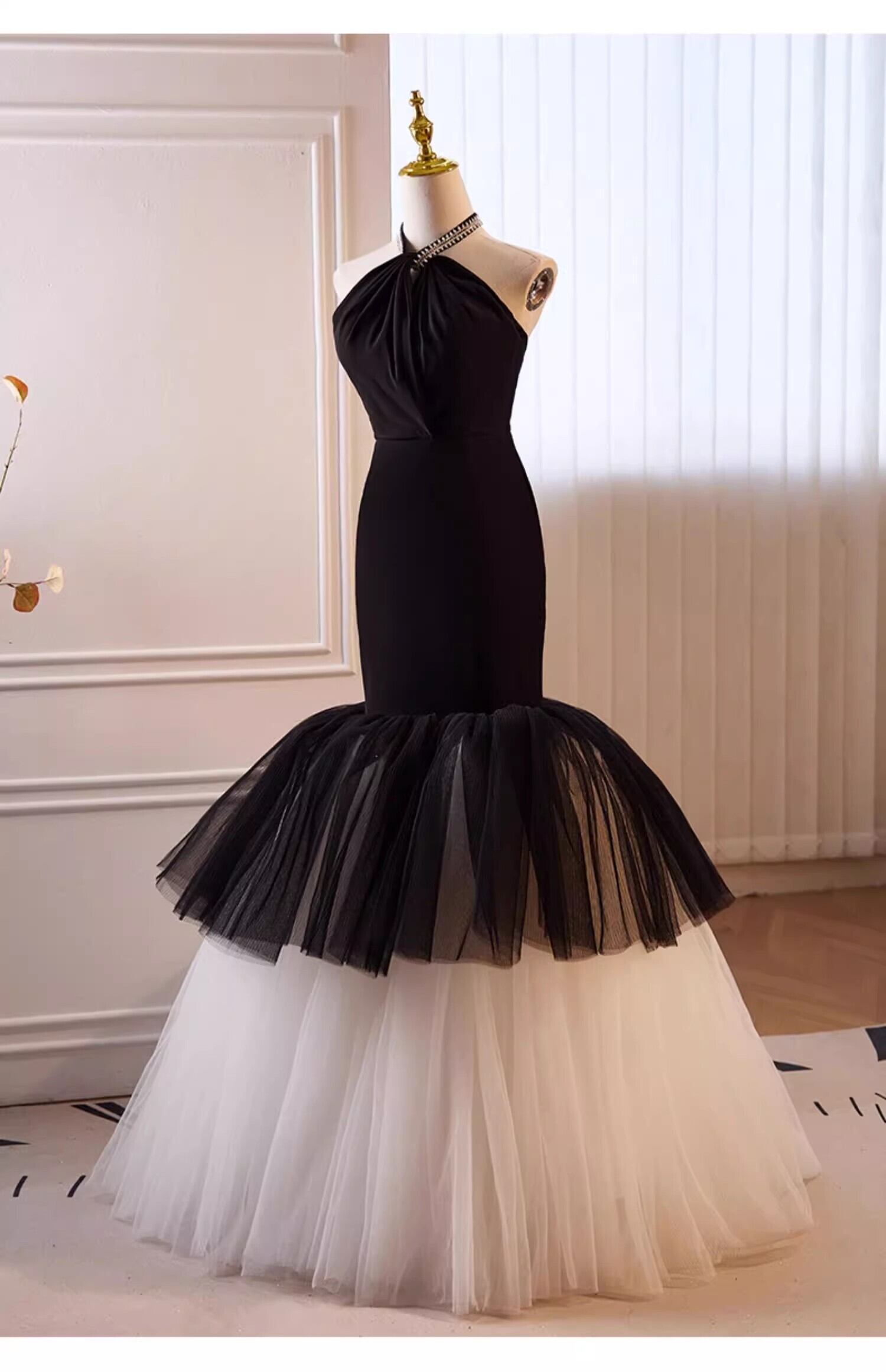 美品! 黒 ホルターネック カラードレス パーティードレス【色変更可能】マーメイドライン