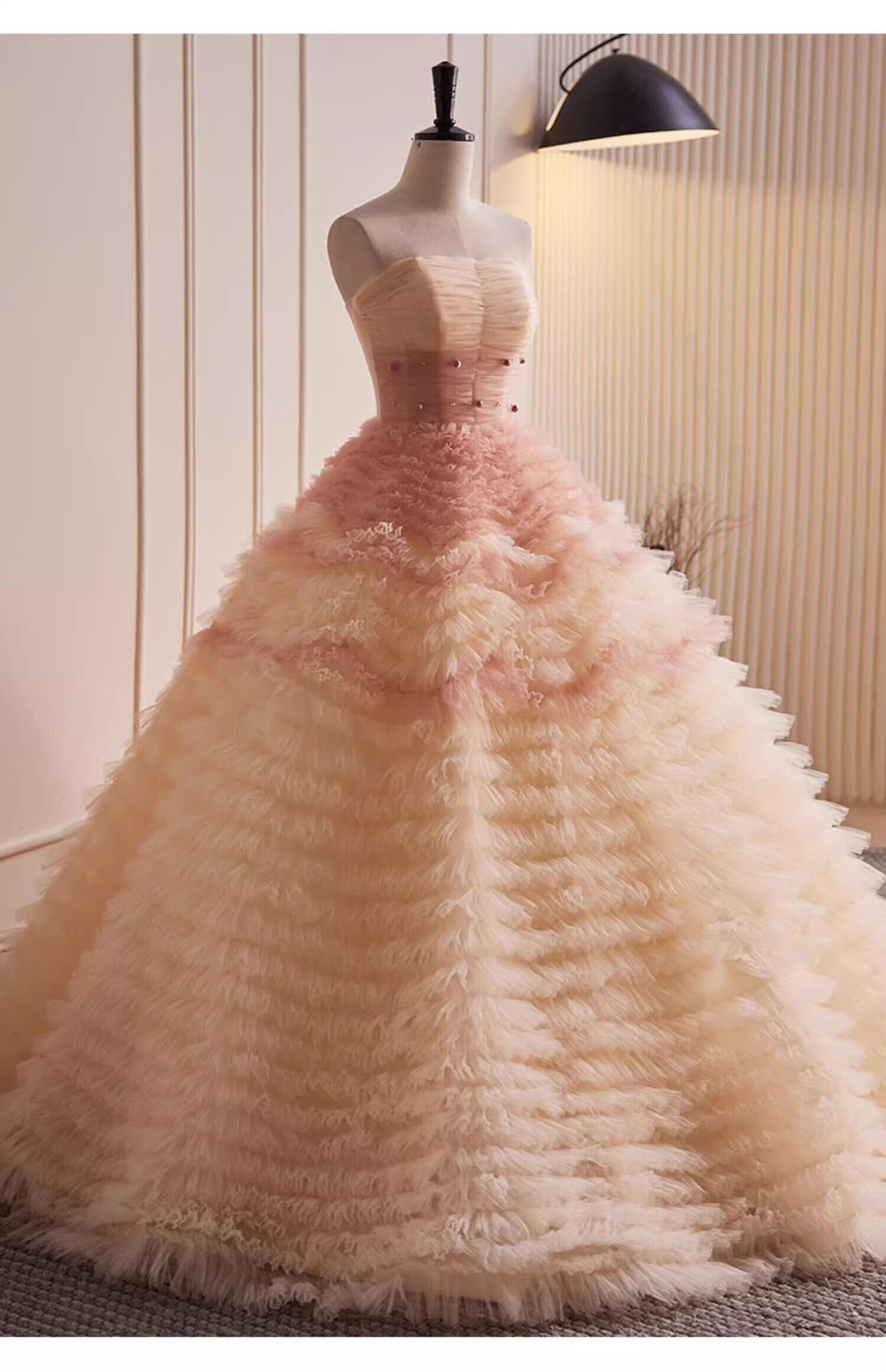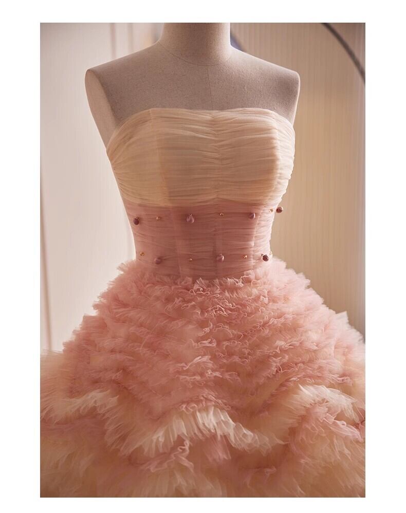 2色 カラードレス バラ ベアトップ パフスリーブ チュールドレス リボン ふわふわ ボリュームドレス