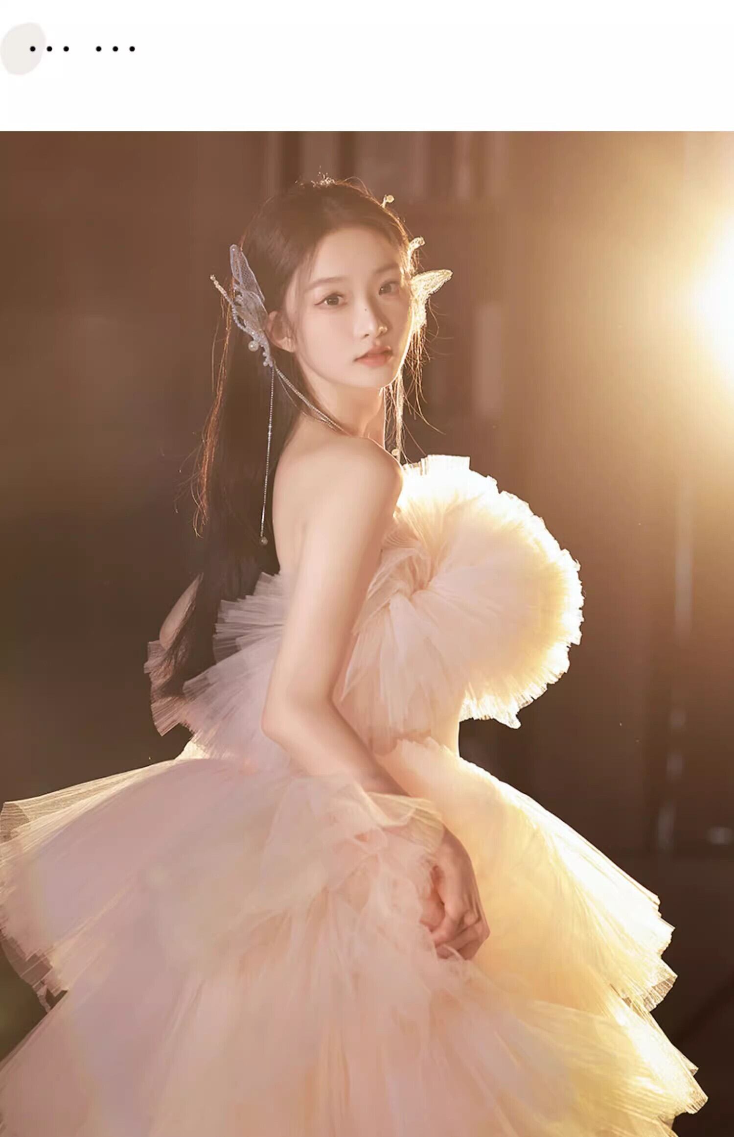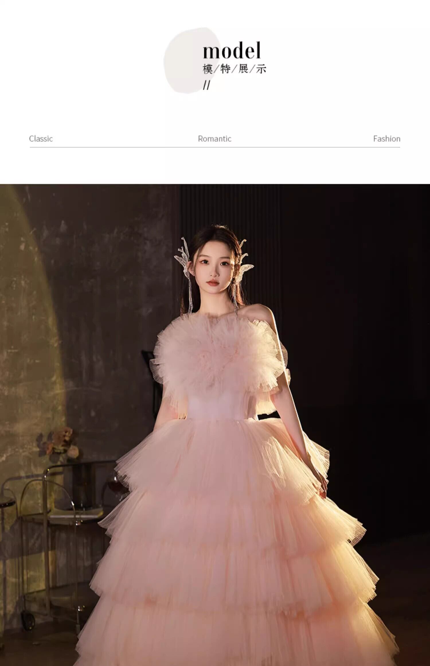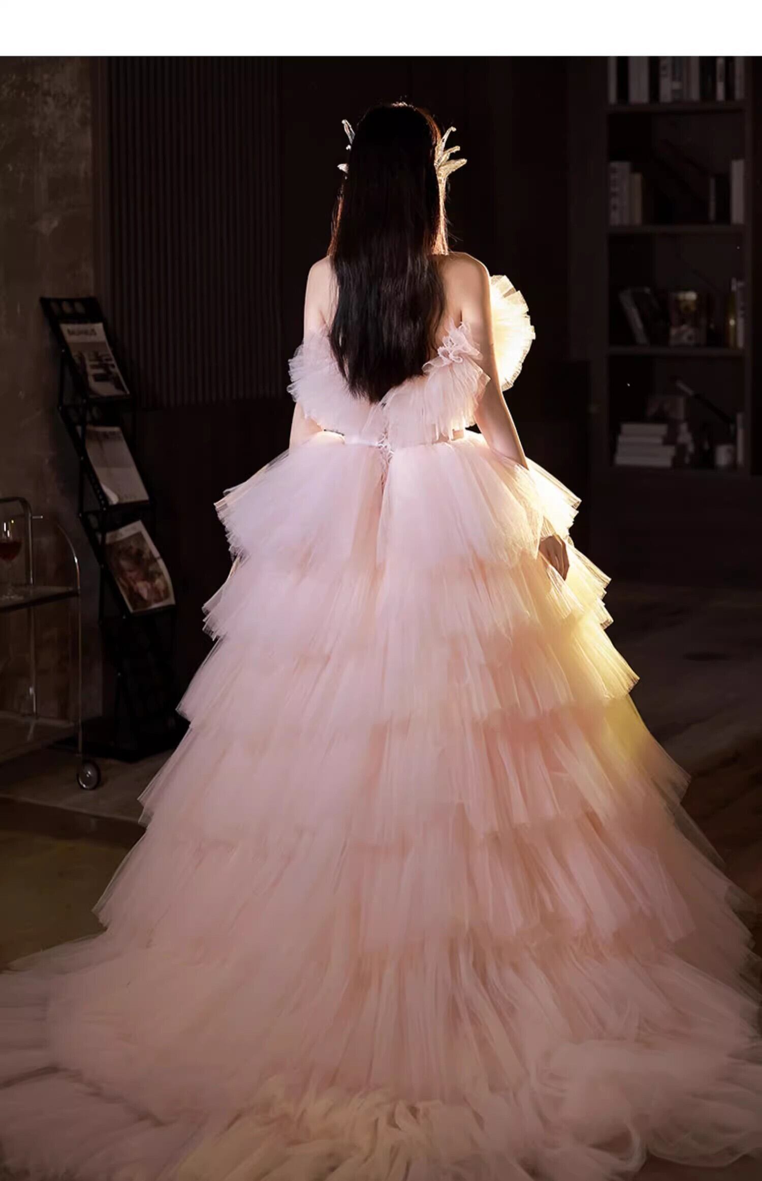 カラードレス バラ ベアトップ パフスリーブ チュールドレス リボン ふわふわ ボリュームドレス
