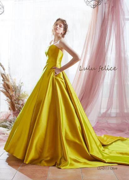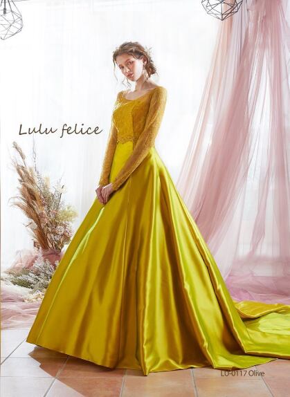 美品!ゴールド マスタード色 カラードレス 上品レースボレロ 高みせ 細見えシルエット イブニングドレス パーティードレス【色変更可能】