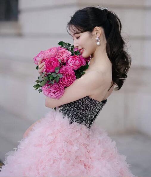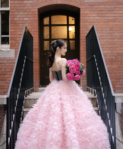 高品質!バイカラー ピンク/ブラック カラードレス 韓国風ドレス ボリュームドレス ふわふわチュールドレス パーティードレス【色変更可能】