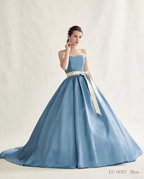 美品!水色/ブルー カラードレス 上品レースボレロ トップス Aラインドレス ウエストリボン イブニングドレス パーティードレス【オーダーメイド】