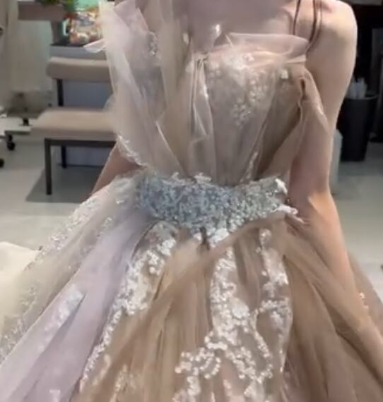 美品!ラッフルフリル ベージュブラウン カラードレス プリンセスライン イブニングドレス パーティードレス【色変更可能】