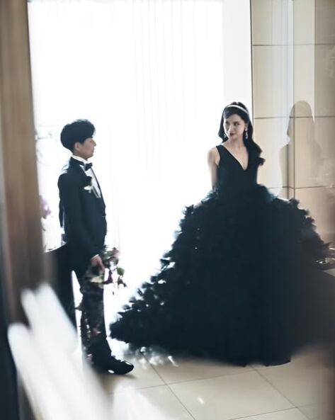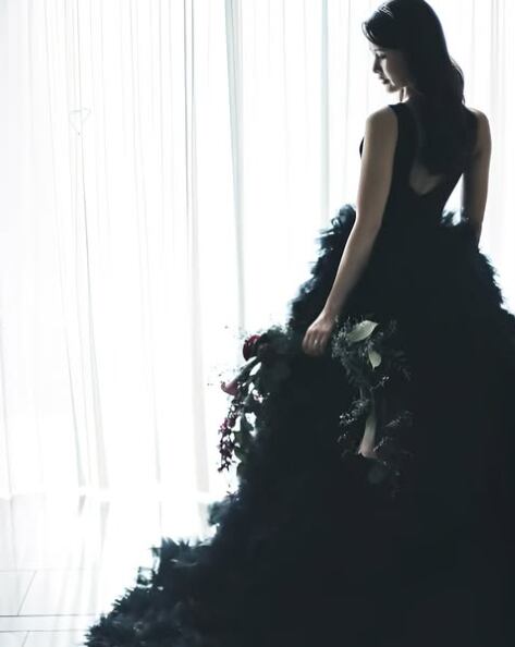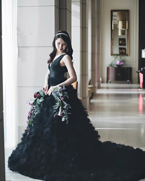 高品質!ブラック/黒 カラードレス 韓国風ドレス ボリュームドレス もこもこフリルドレス イブニングドレス パーティードレス【色変更可能】