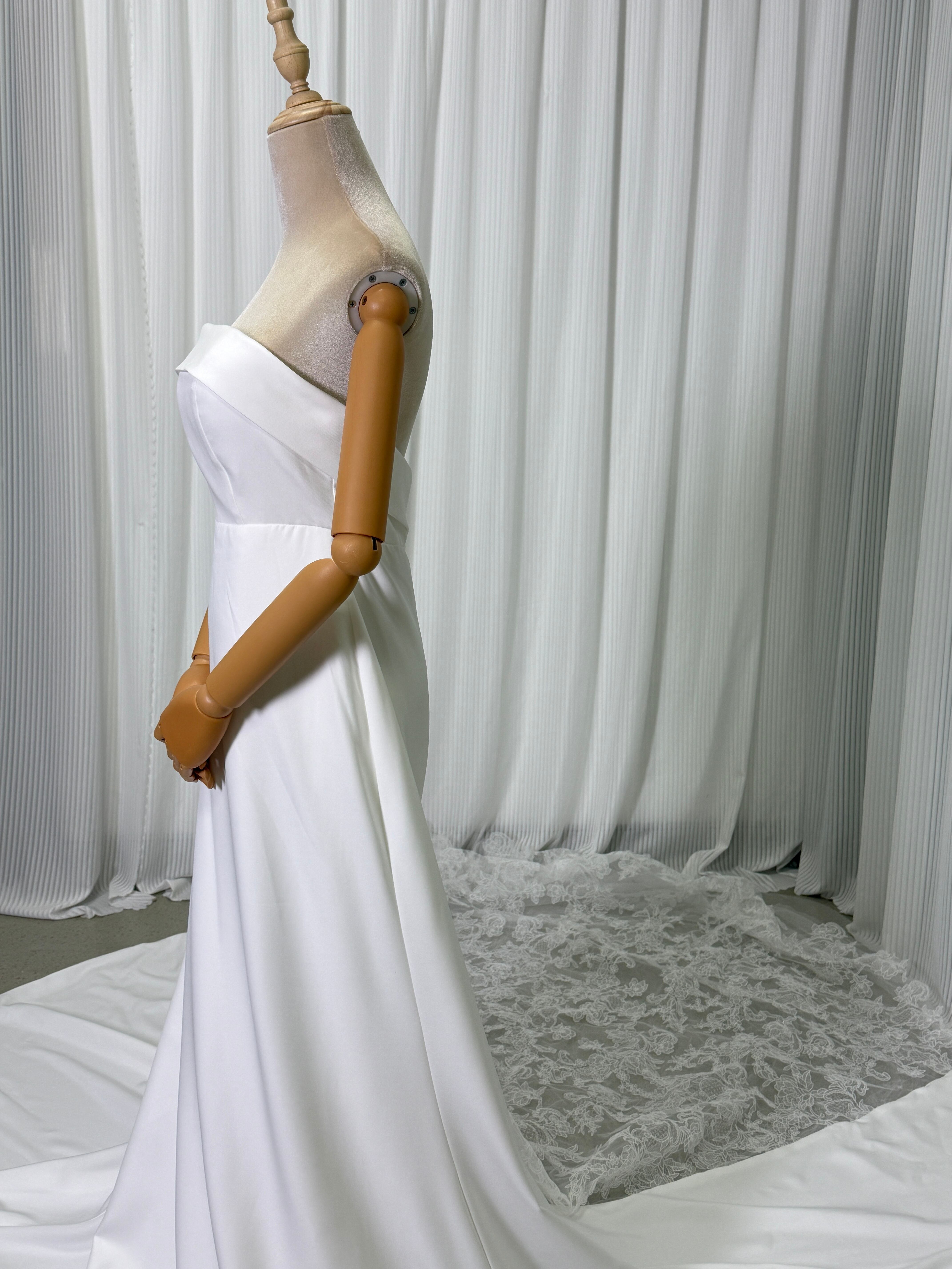 オフショルダー ウエディングドレス 華やかなトレー 3D立体レース刺繍 抜群のおしゃれ見え 前撮り結婚式