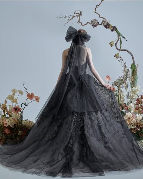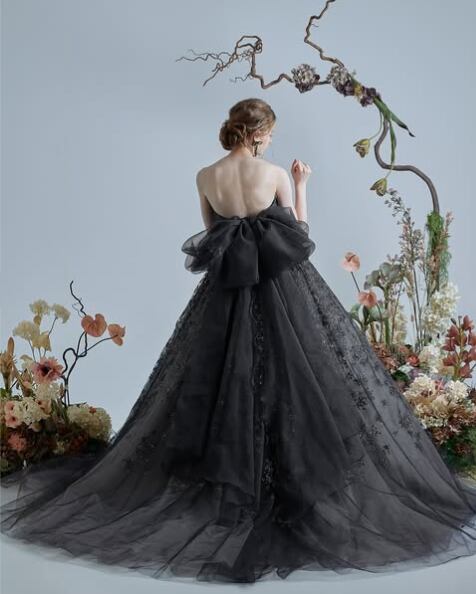 高品質!ブラック/黒 カラードレス キラキララメチュール ボリュームドレス バックリボン 演奏ドレス イブニングドレス パーティードレス【色変更可能】
