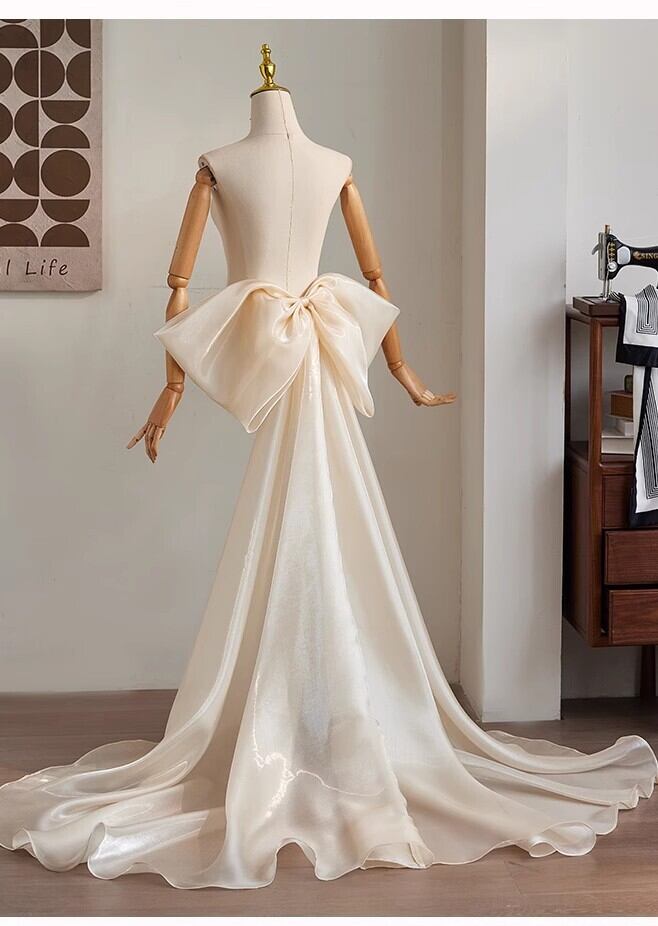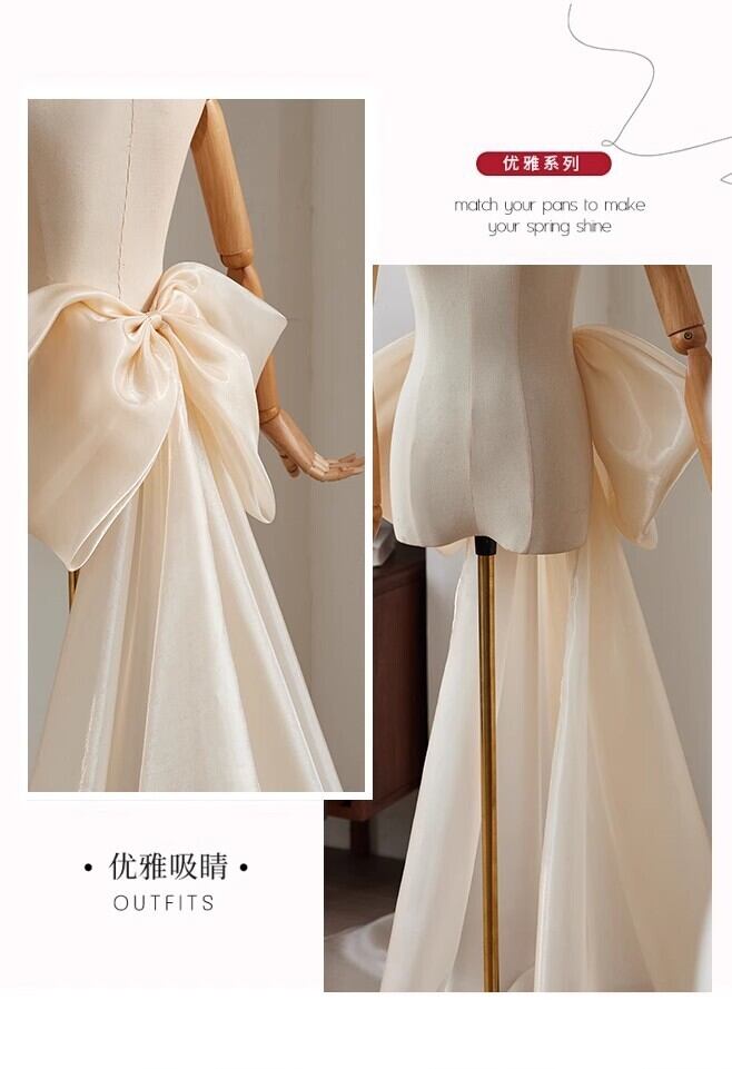 送料無料!シャンパン色 ふっくら柔らかなバックリボン ソフトチュール ロングトレーン オーバースカート/挙式/前撮り/結婚式