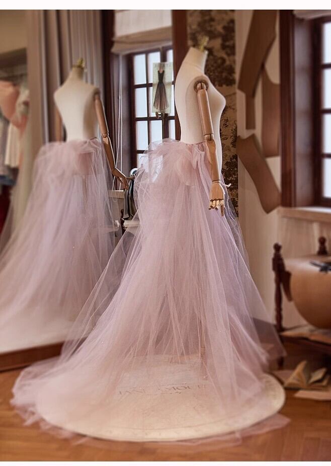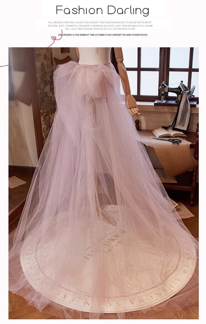 送料無料!薄 紫 ソフトチュール ロングトレーン オーバースカート/挙式/前撮り/結婚式