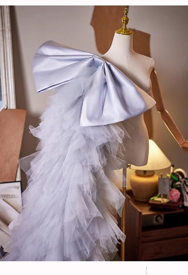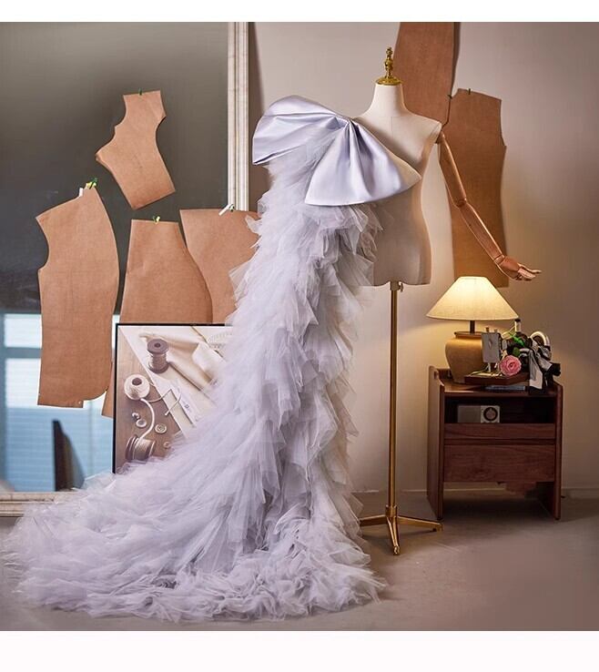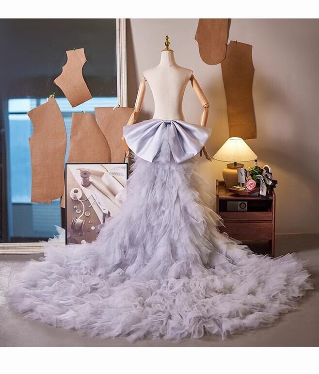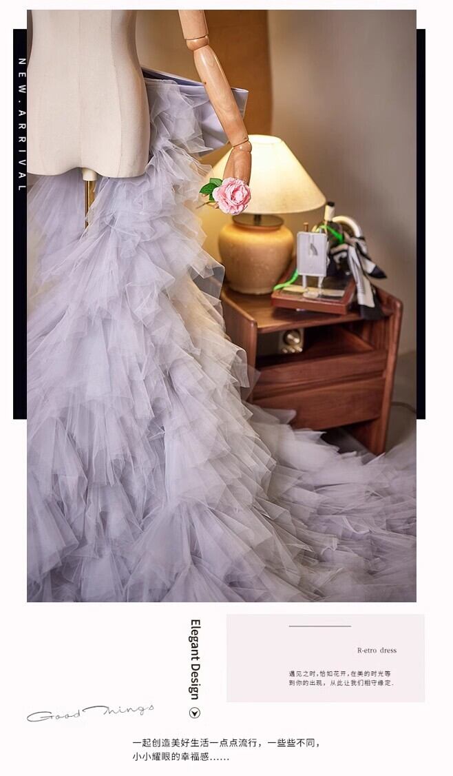 送料無料!グレー カラードレス ソフトチュール もこもこドレス オーバースカート/挙式/前撮り/結婚式
