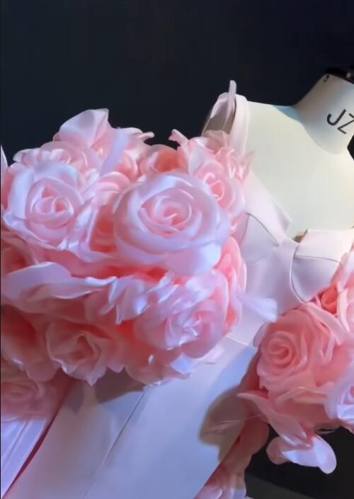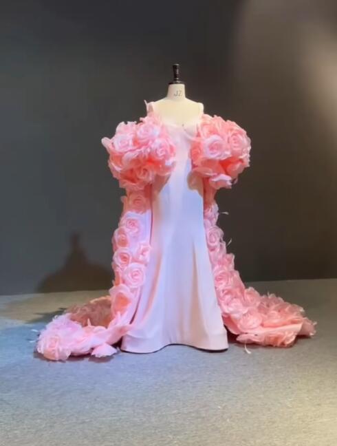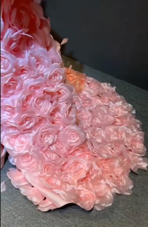 送料無料!バラドレス ピンク カラードレス ソフトチュール もこもこドレス ボリュームたっぷり/挙式/前撮り/結婚式