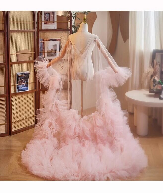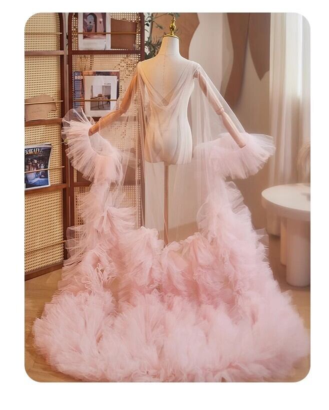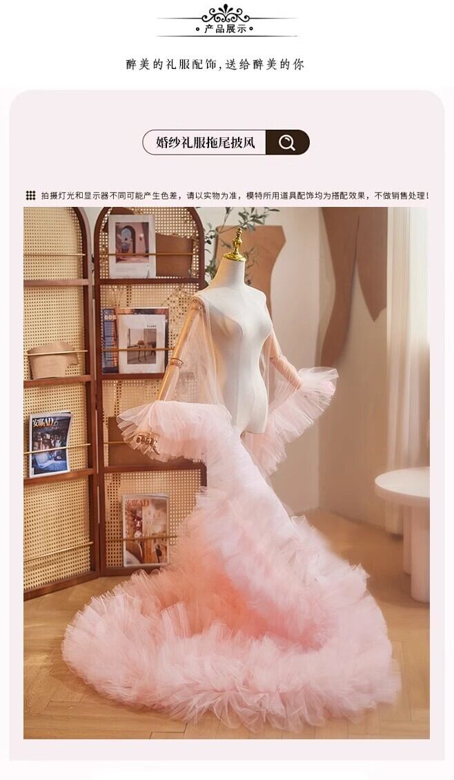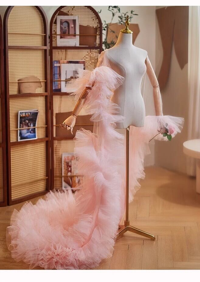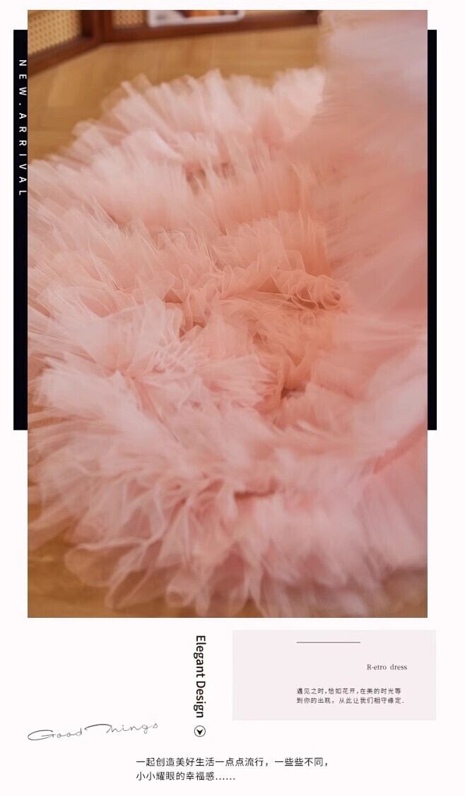 送料無料! ピンク もこもこドレス ロングトレーン オーバースカート/挙式/前撮り/結婚式