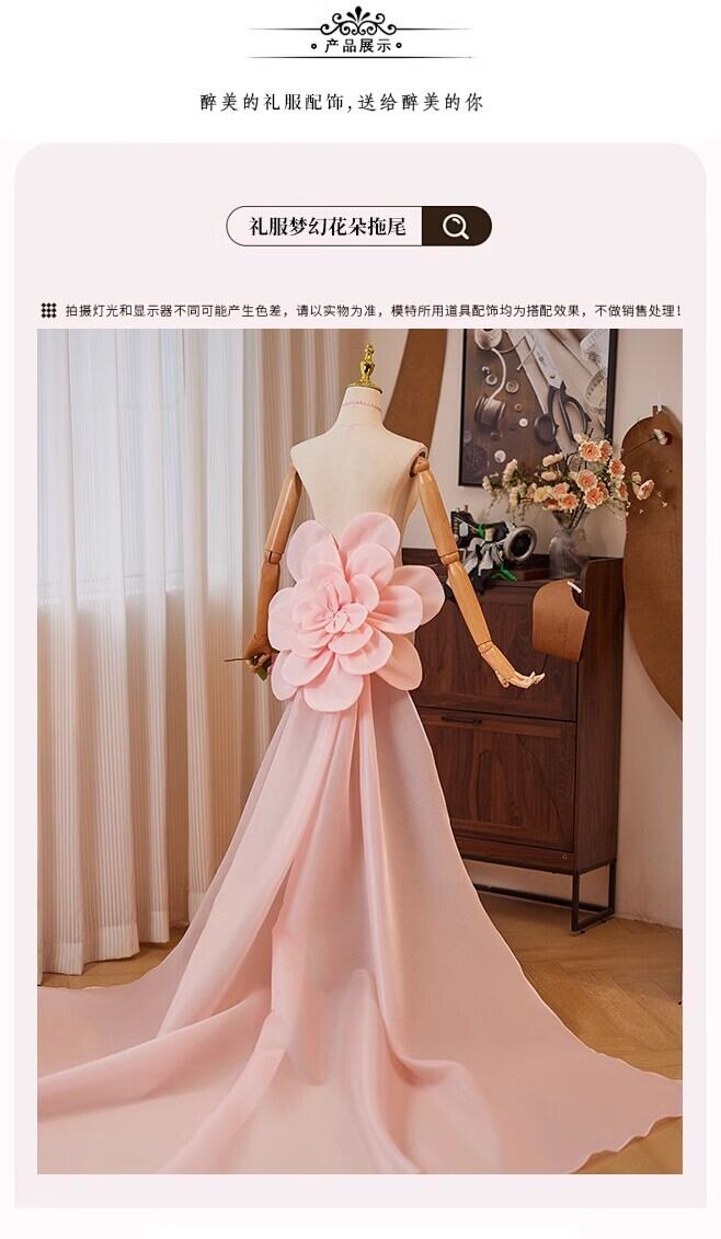 送料無料! ピンク ふっくら柔らかなバック バラ ロングトレーン オーバースカート/挙式/前撮り/結婚式
