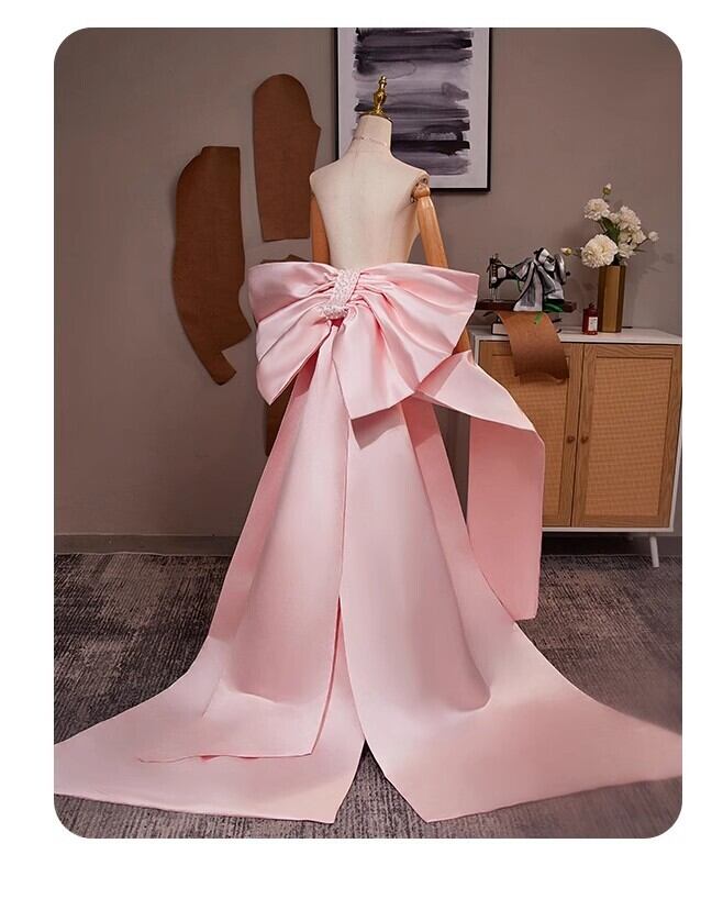 送料無料! ピンク ふっくら柔らかなバックリボン ロングトレーン オーバースカート/挙式/前撮り/結婚式