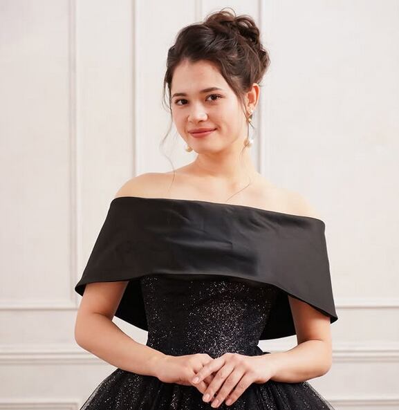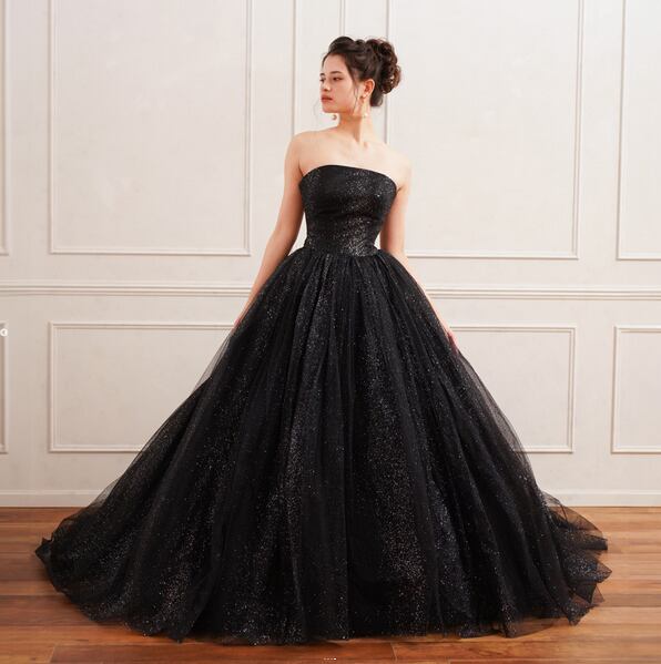 高品質!ブラック/黒 カラードレス ロールカラー キラキララメチュール 星空ドレス Aラインドレス 演奏ドレス【色変更可能】