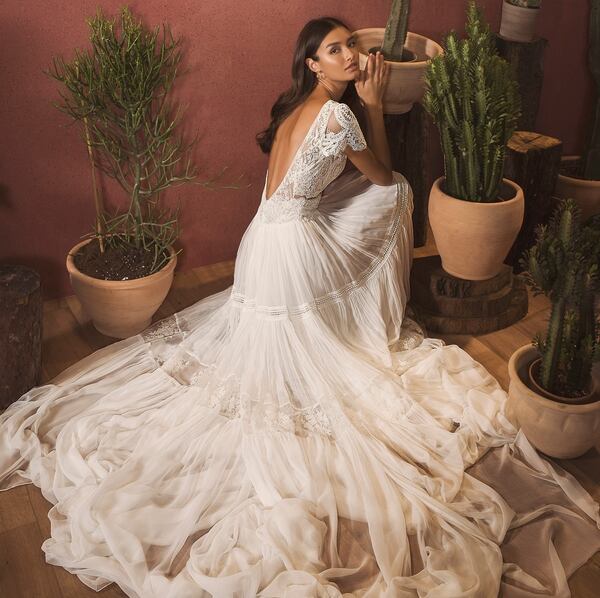 高品質!バックレス ウエディングドレス 半袖 繊細レーストップス スレンダーライン 高みせ 細見えシルエット パーティードレス【オーダーメイド】