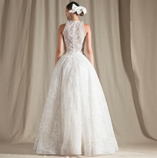 高品質!総レースドレス ウエディングドレス ノースリーブ Aラインドレス 高みせ 細見えシルエット パーティードレス【オーダーメイド】