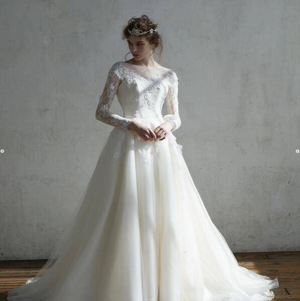 高品質!繊細レースボレロ ウエディングドレス バックレス ロングスリーブ 花モチーフ刺繡 Aラインドレス 高みせ パーティードレス【オーダーメイド】