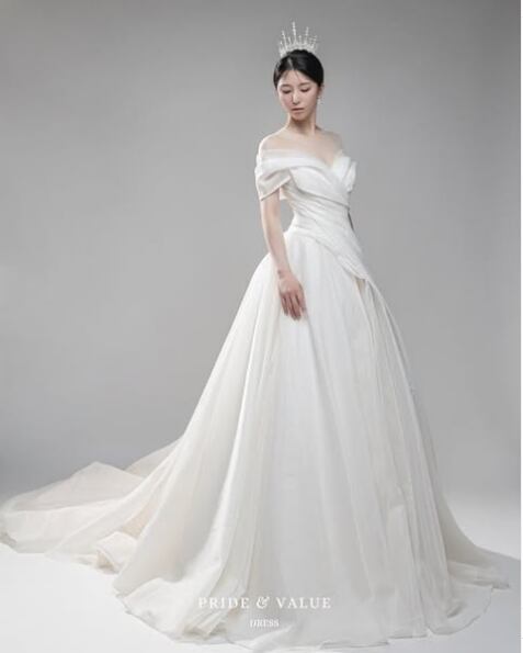 高品質!オフショルダー ウエディングドレス Aラインドレス 美しいボディーライン 細見えシルエット 高みせ パーティードレス【色変更可能】