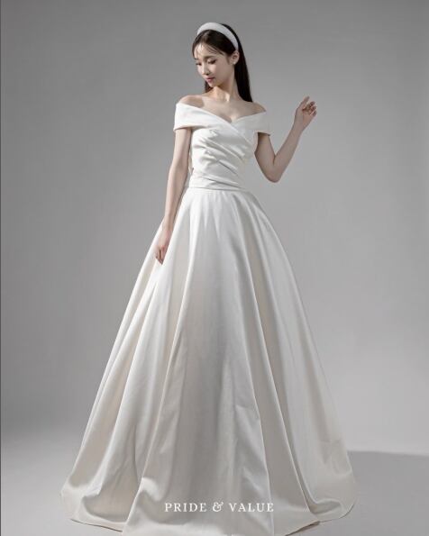 高品質!オフショルダー ウエディングドレス Aラインドレス 美しいボディーライン 細見えシルエット 高みせ パーティードレス【色変更可能】