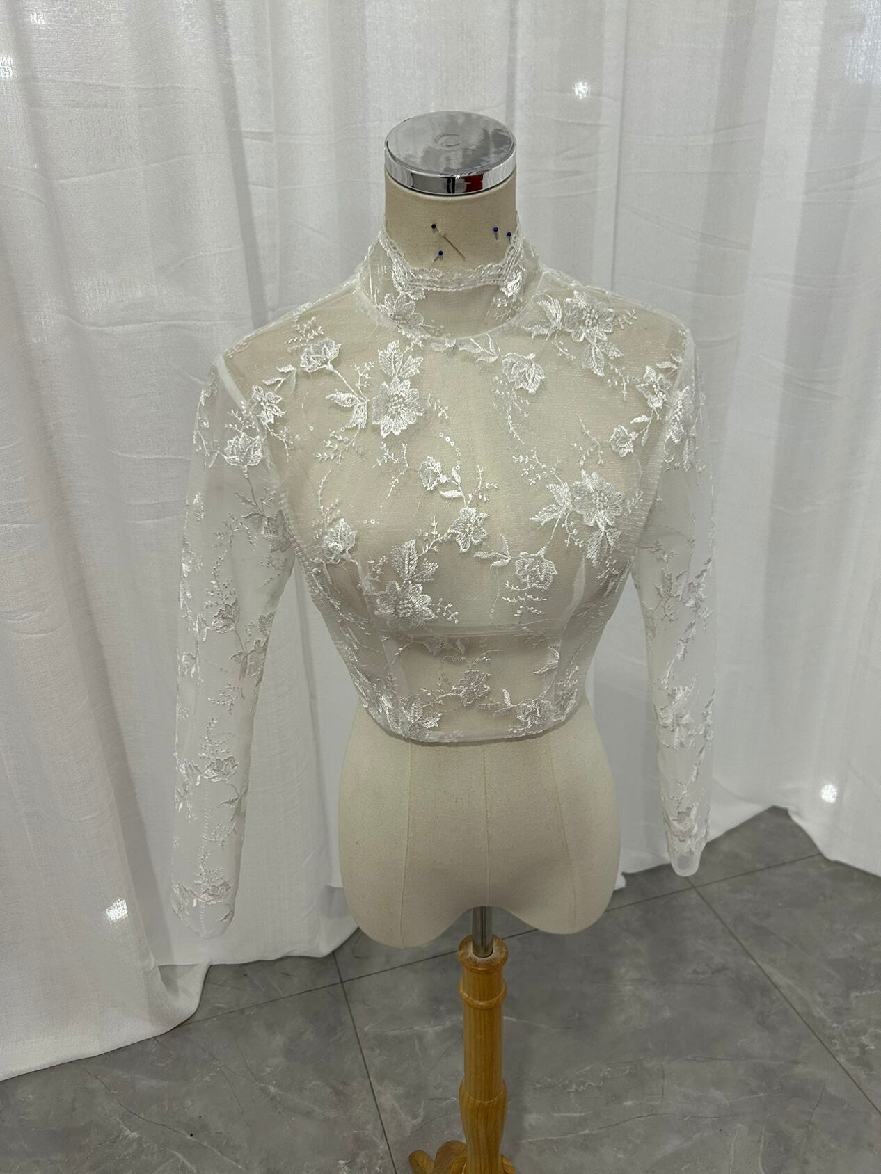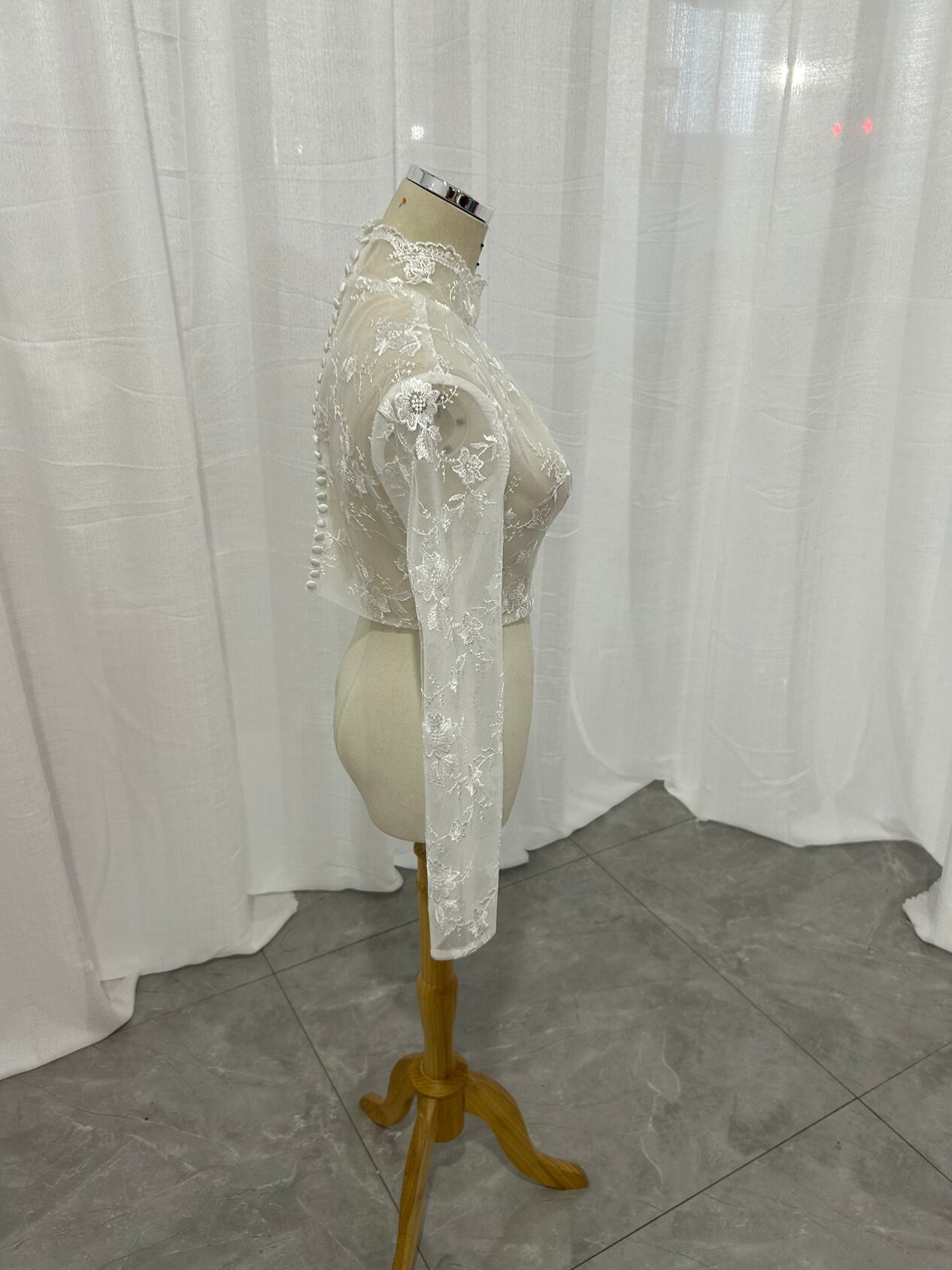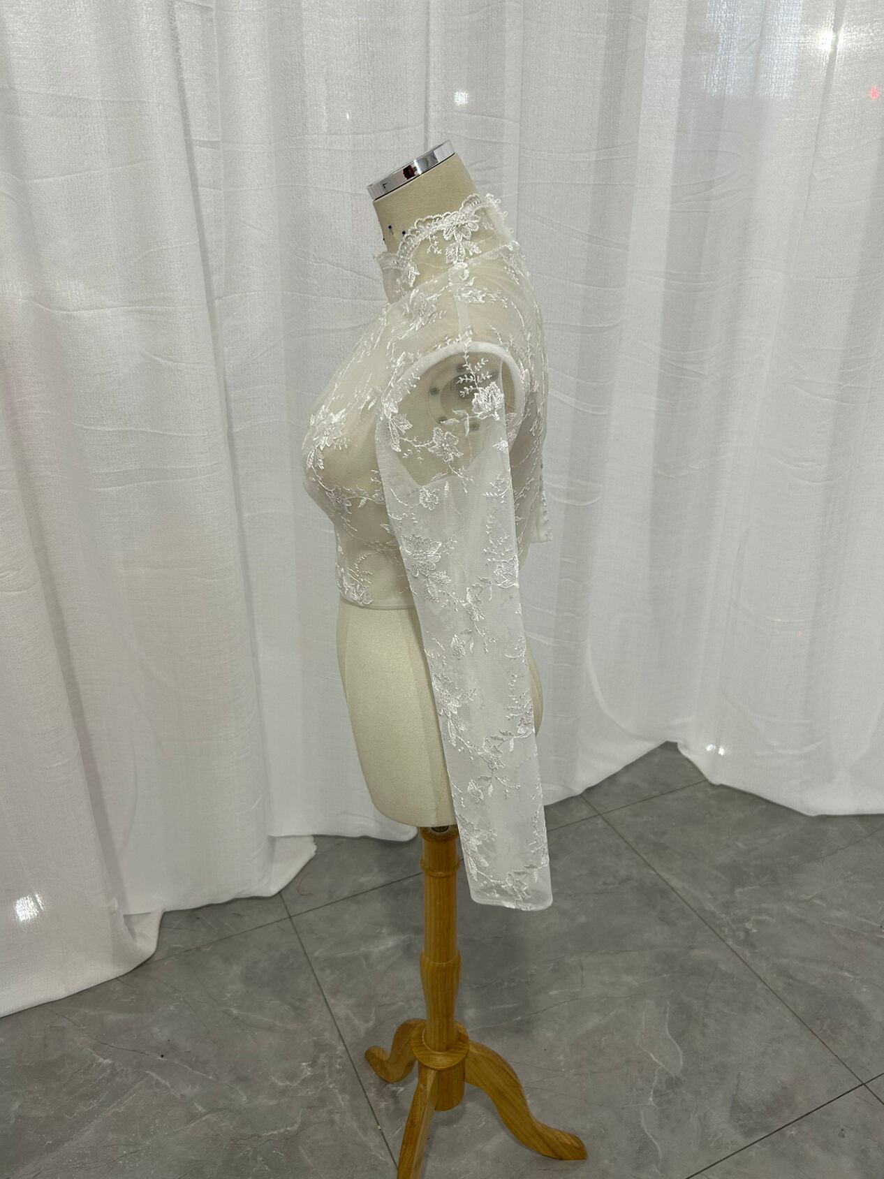 エレガント レースボレロ トップス ウエディングドレス 長袖 ハイネック 繊細レース 結婚式/披露宴 S