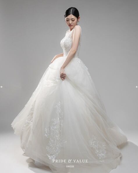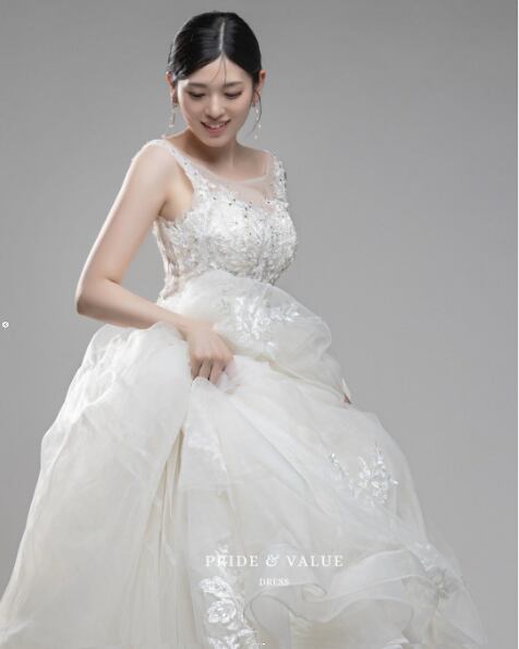 高品質!ウエディングドレス 韓国風ドレス ノースリーブ 繊細レース 3Dアップリケ Aラインドレス パーティードレス【オーダーメイド】