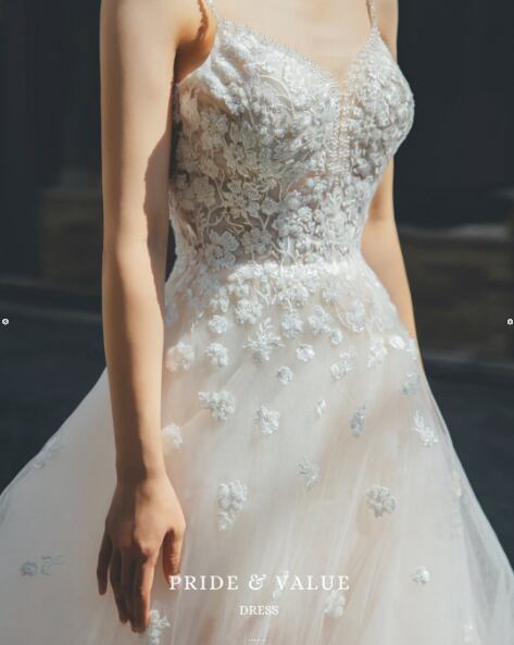 高品質!アイボリー色 ウエディングドレス 繊細花レース チュールドレス キャミソール 美しいボディーライン パーティードレス【オーダーメイド】