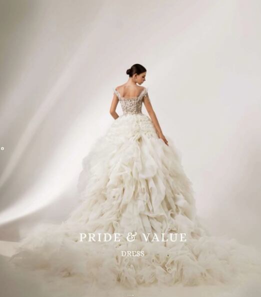 高品質!ボリュームドレス ウエディングドレス 韓国風ドレス ふわふわチュールドレス ラッフルフリル パーティードレス【色変更可能】