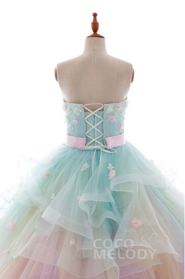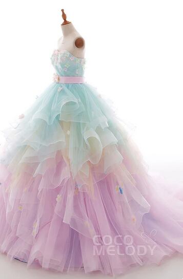 ゴージャス!多彩なレインボードレス カラードレス パステルカラー グラデーション ラッフルフリル ダンスドレス パーティードレス ピアノ演奏ドレス