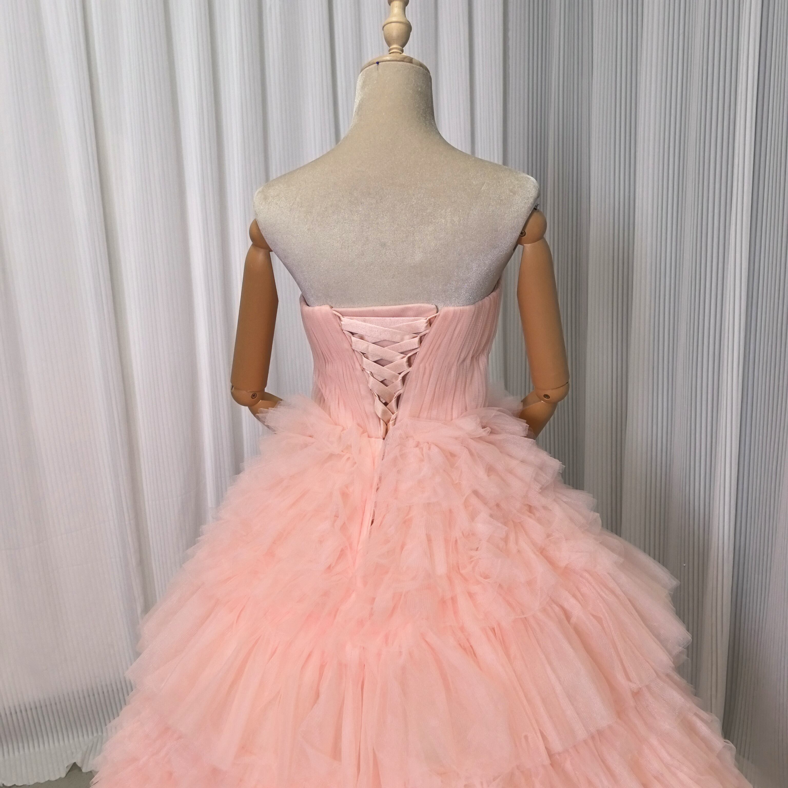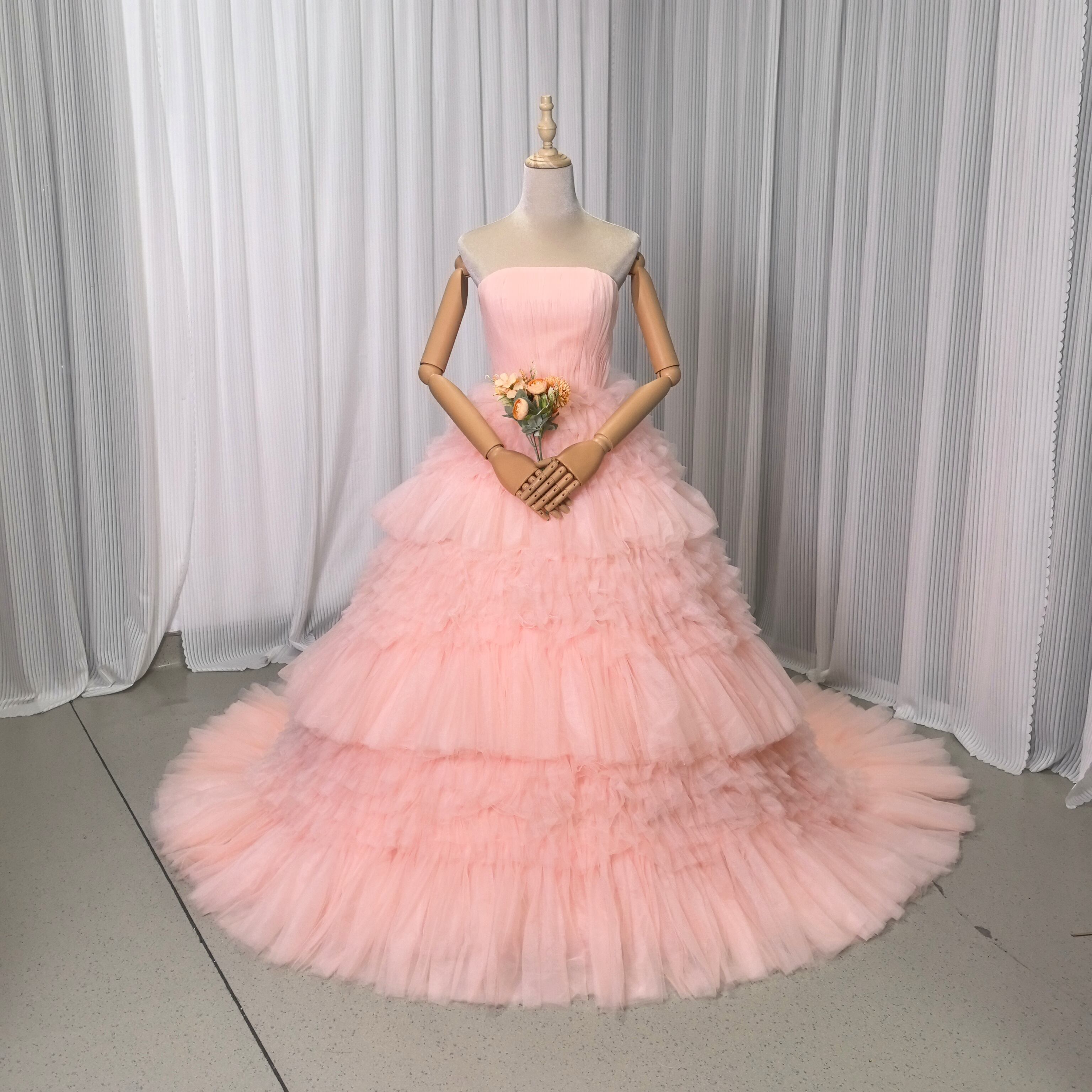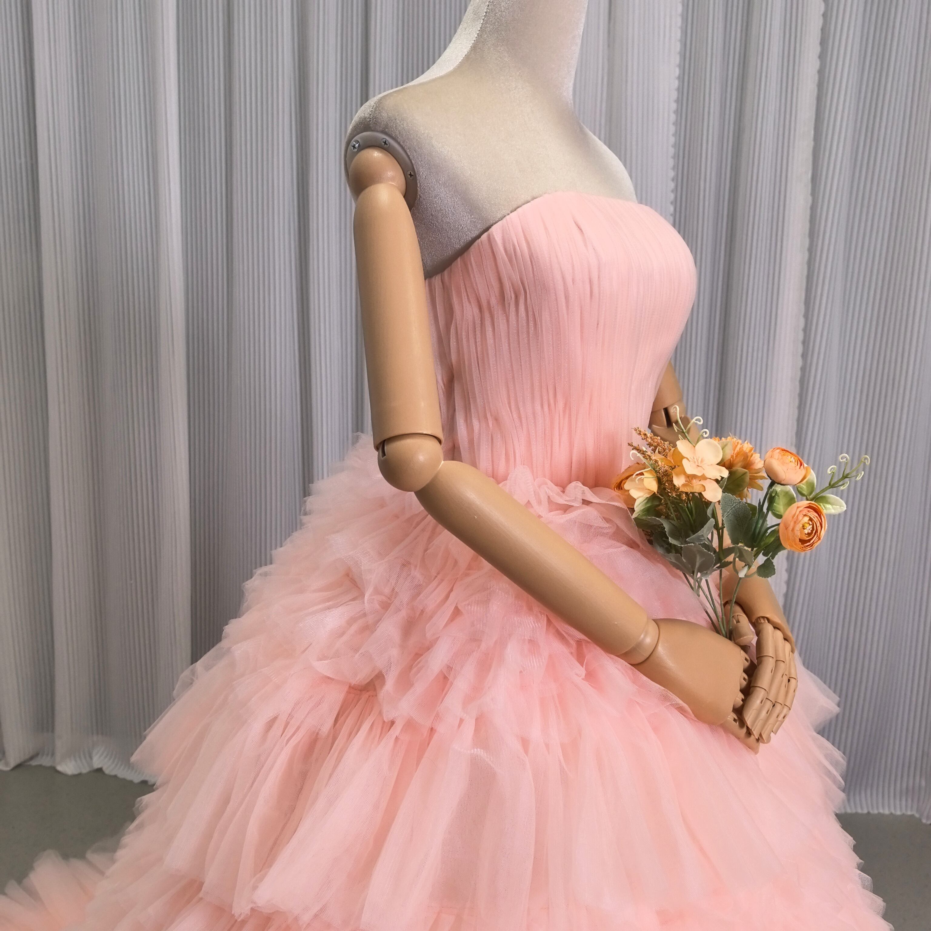 韓国風ベアトップ カラードレス パフスリーブ チュールドレス リボン ふわふわ ボリュームドレス