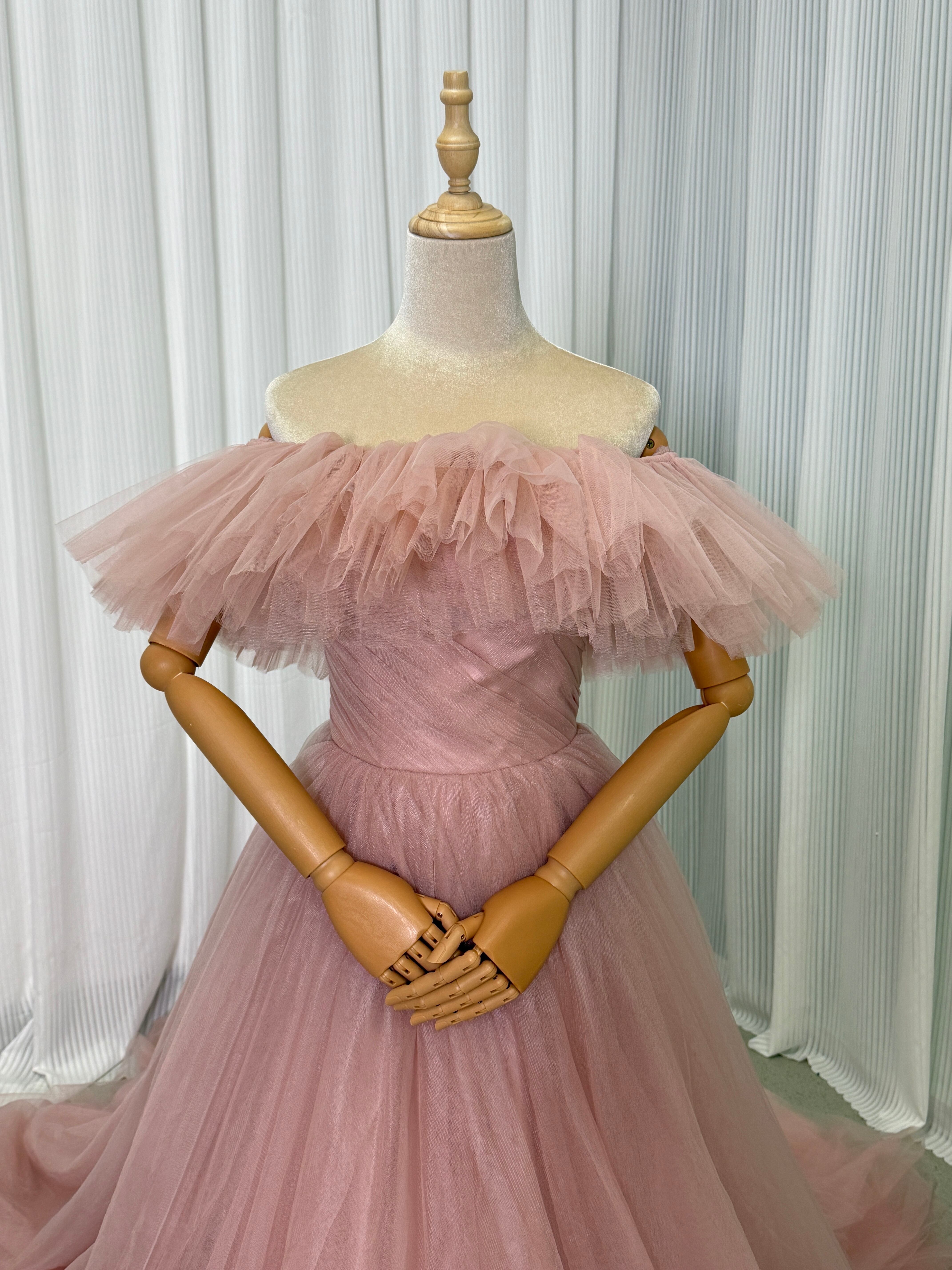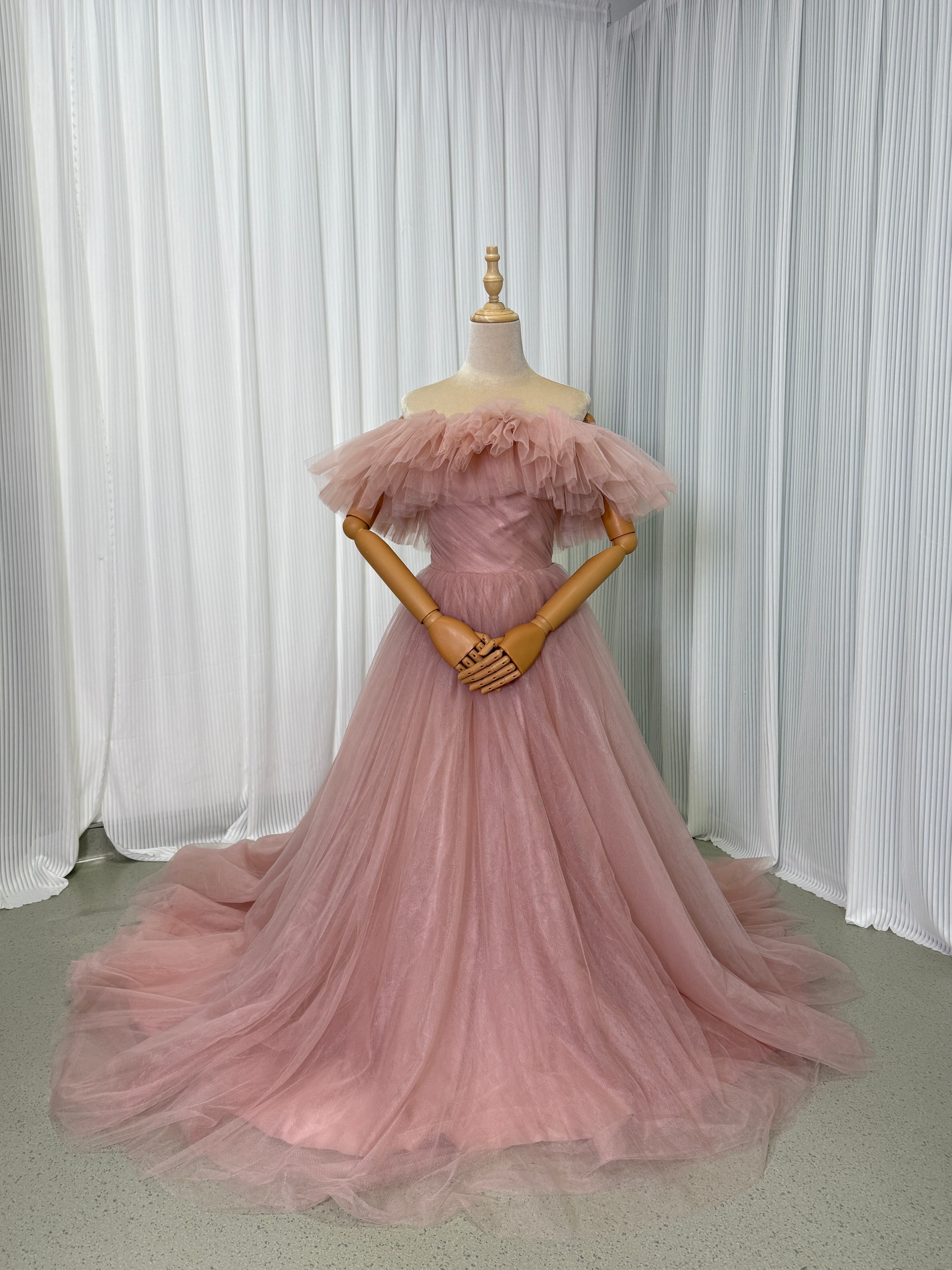 美品!ピンク カラードレス 取り外しオフショルダーソフトチュール 結婚式