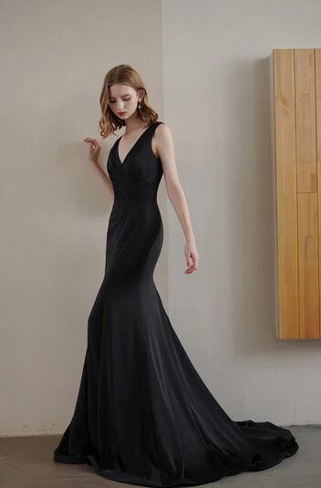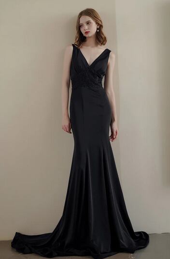 美品!ブラック/黒 カラードレス ノースリーブ マーメードスタイル 繊細レース ミディアムドレス パーティードレス Vネック【色変更可能】