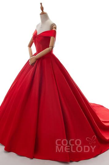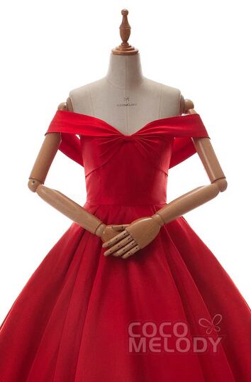 美品!オフショルダー レッド/赤 カラードレス バックリボン Aラインドレス 二次会ドレス フェミニン パーティードレス【色変更可能】
