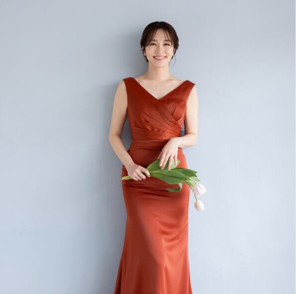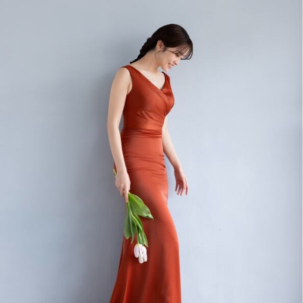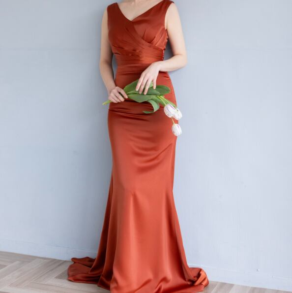 美品!ノースリーブ テラコッタ色 カラードレス マーメイドスタイル フェミニン 二次会ドレス 美しいボディーライン パーティードレス【色変更可能】 | David1021k Dress(ダヴィドレス)