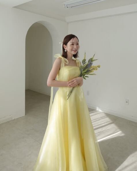 美品!パステルイエロー カラードレス キャミソールドレス トレンド かわいい エンパイアライン ダンスドレス パーティードレス【色変更可能】