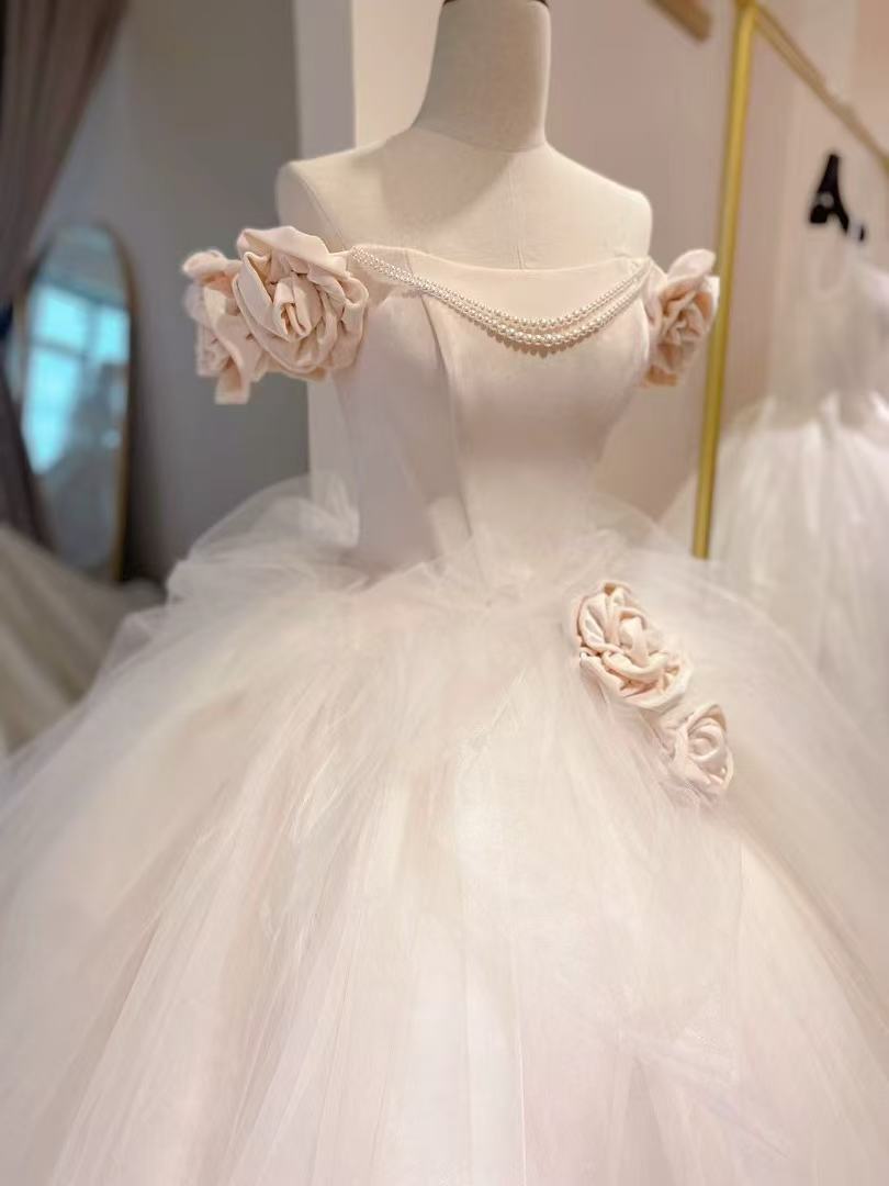 美品! ライトピンク 花モチーフ カラードレス プリンセスライン 二次会ドレス/前撮り パーティードレス【色変更可能】