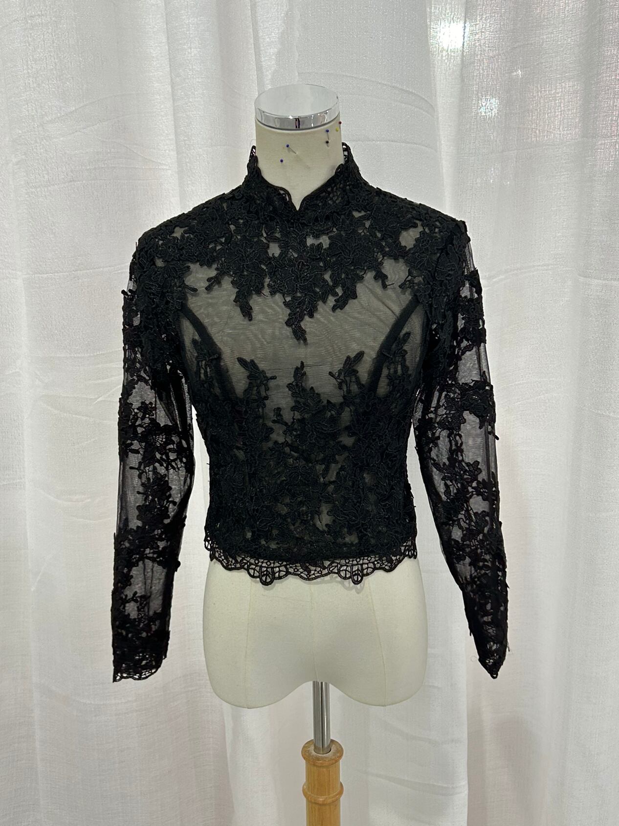 大人気上昇 黒 ウエディングドレス 可憐な花刺繍のトップス ボレロ ハイネック 長袖 ブラウス