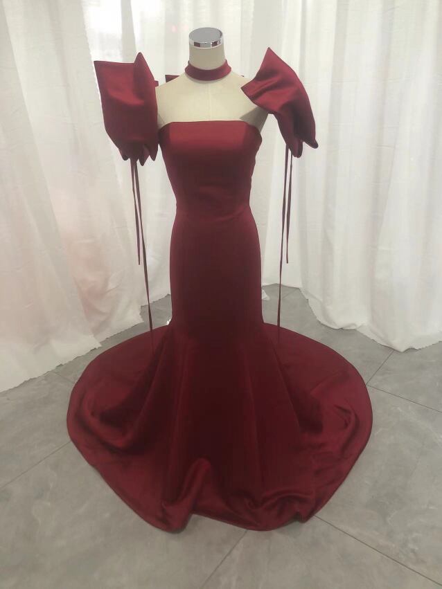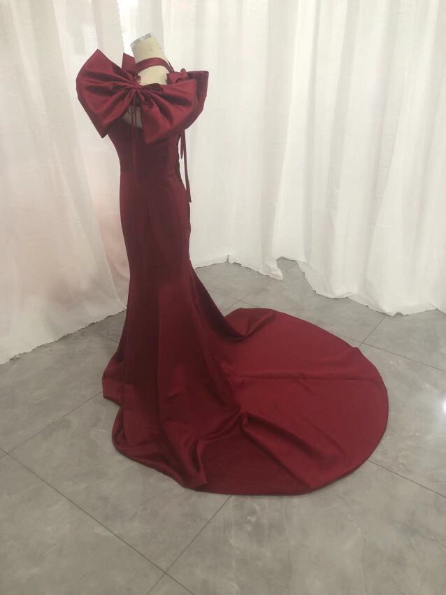 高品質!パーティードレス ボルドー色 マーメイドライン セクシー カラードレス 2次会 前撮り 花嫁 挙式