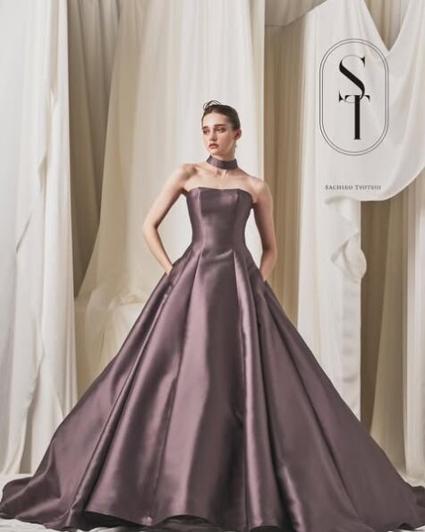 高品質!ベアトップ ブラウン カラードレス Aラインドレス 光沢サテン イブニングドレス 前撮り パーティードレス【色変更可能】