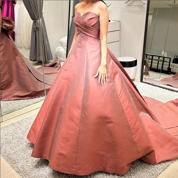 美品!ピンクブラウン カラードレス Aラインドレス バックトレーン 二次会ドレス ロングトレーン イブニングドレス パーティードレス【色変更可能】