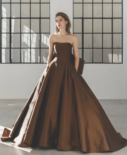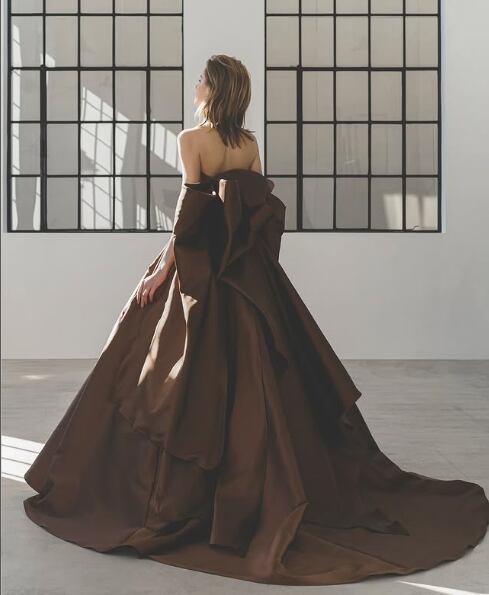 美品!チョコレートブラウン カラードレス Aラインドレス バックトレーン 二次会ドレス ロングトレーン イブニングドレス パーティードレス【色変更可能】