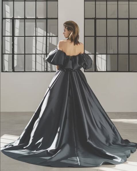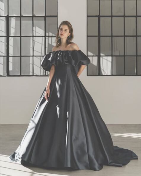 美品!カラードレス ブルーグレー Aラインドレス ふわふわオフショルダー 二次会ドレス イブニングドレス パーティードレス【色変更可能】