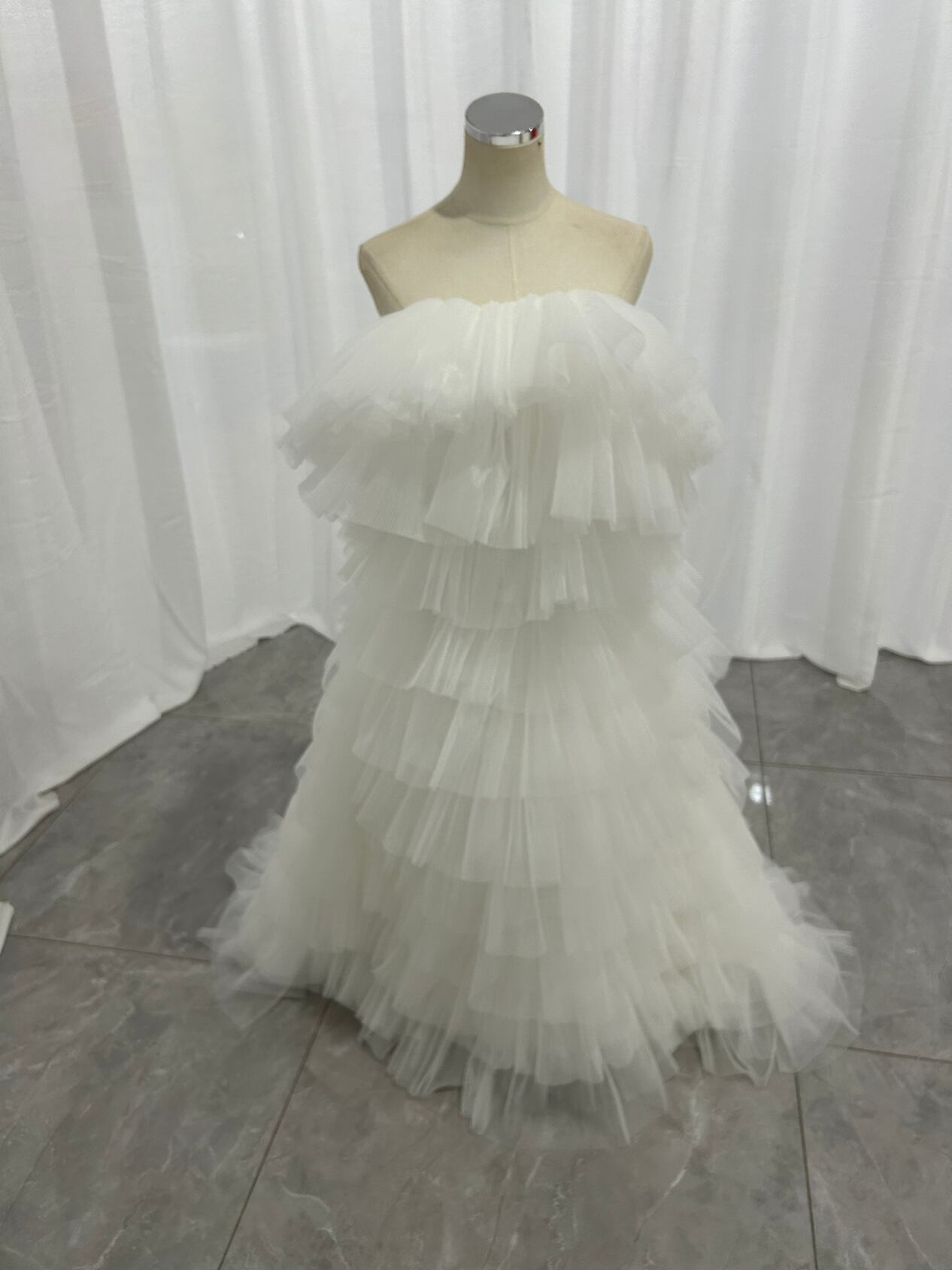 送料無料!人気上昇!オフホワイト カラードレス チュールドレス フリルオフショルダー お色直し ふわふわ もこもこドレス