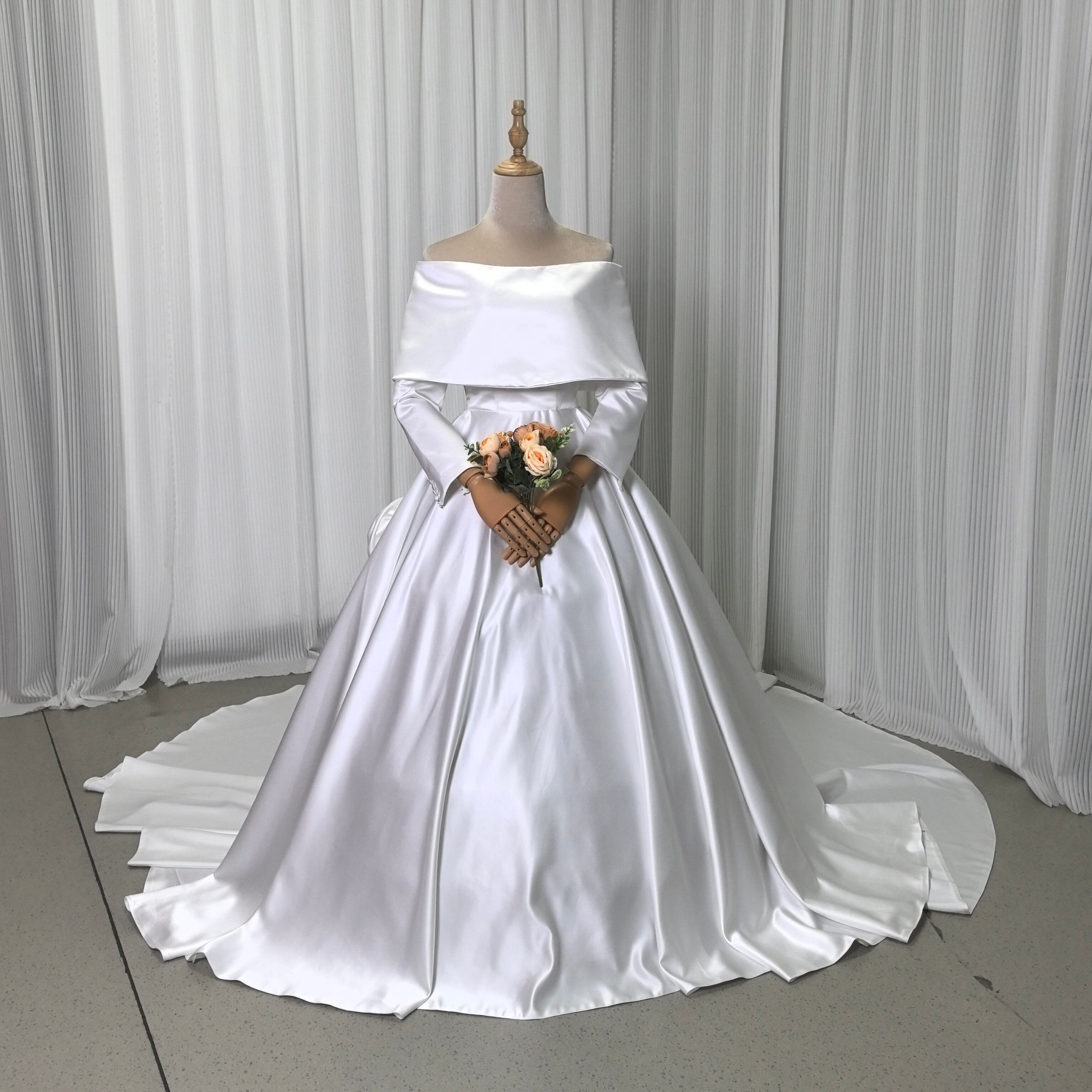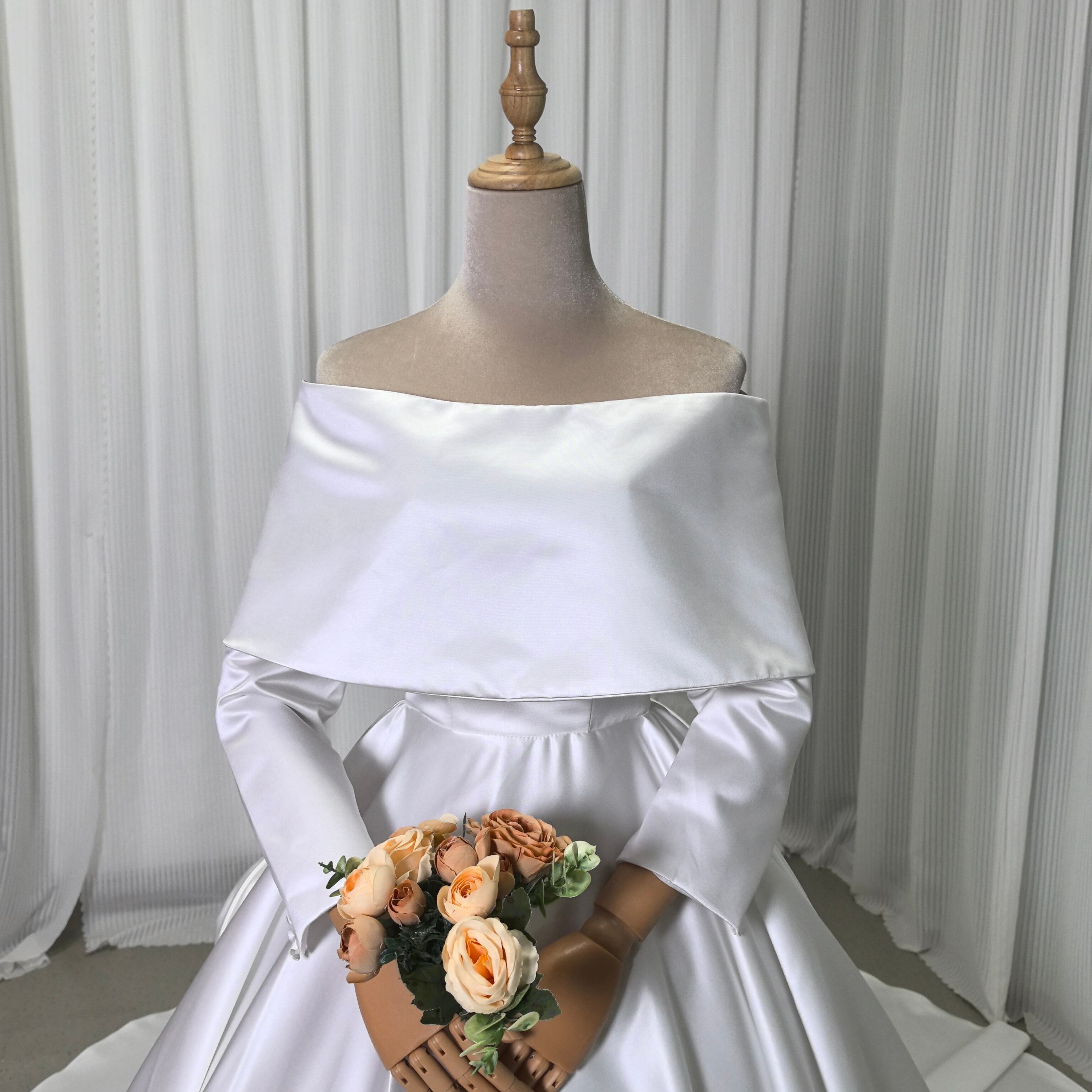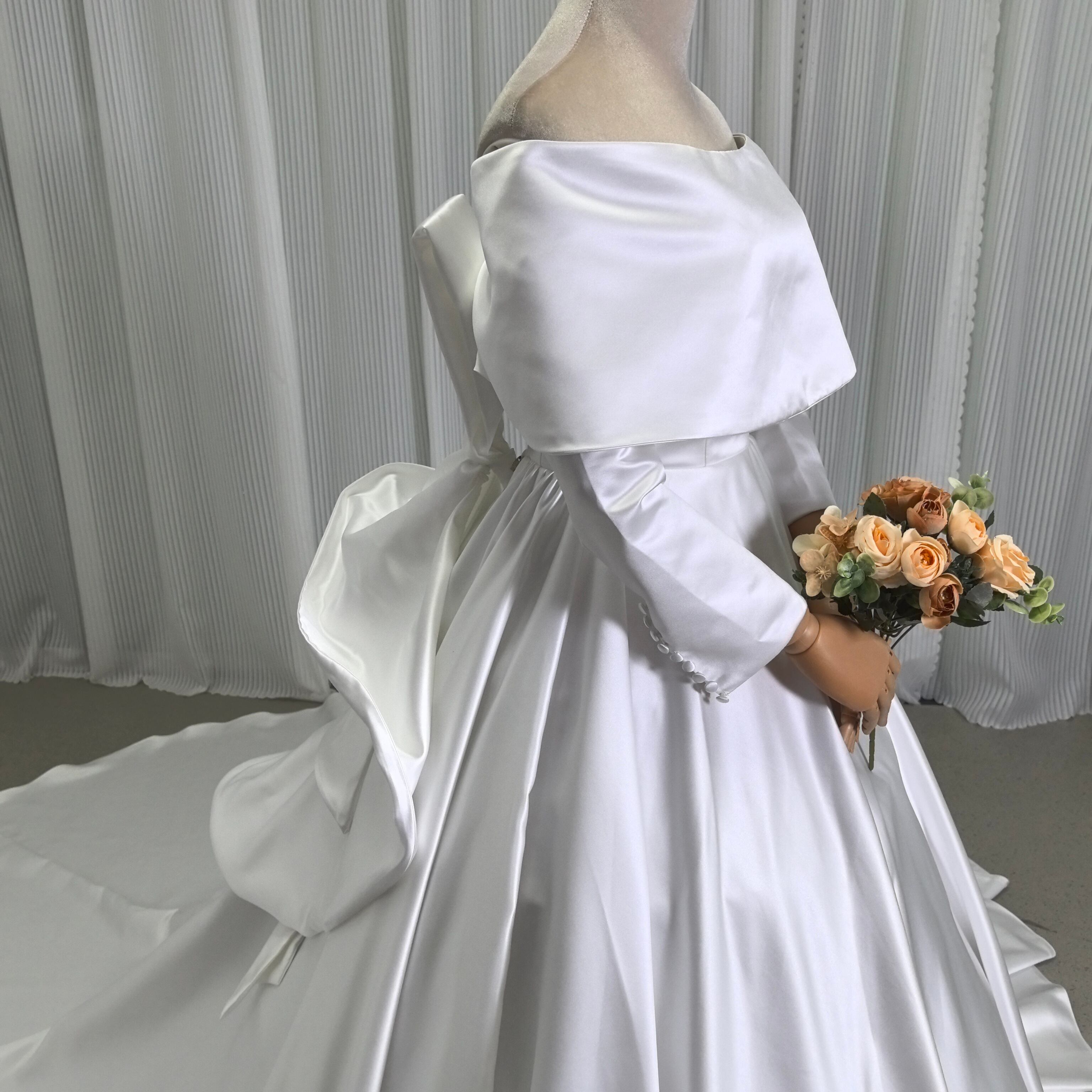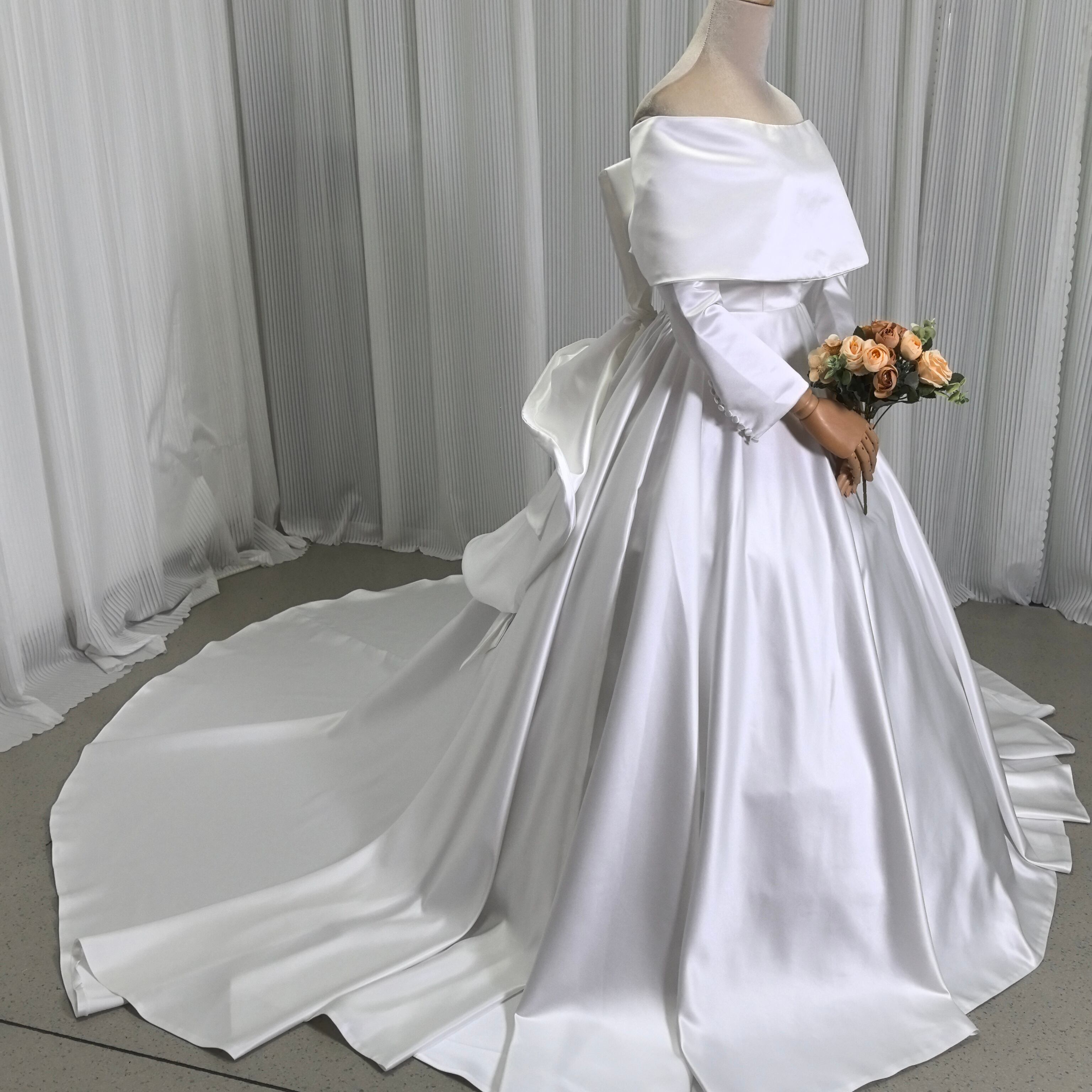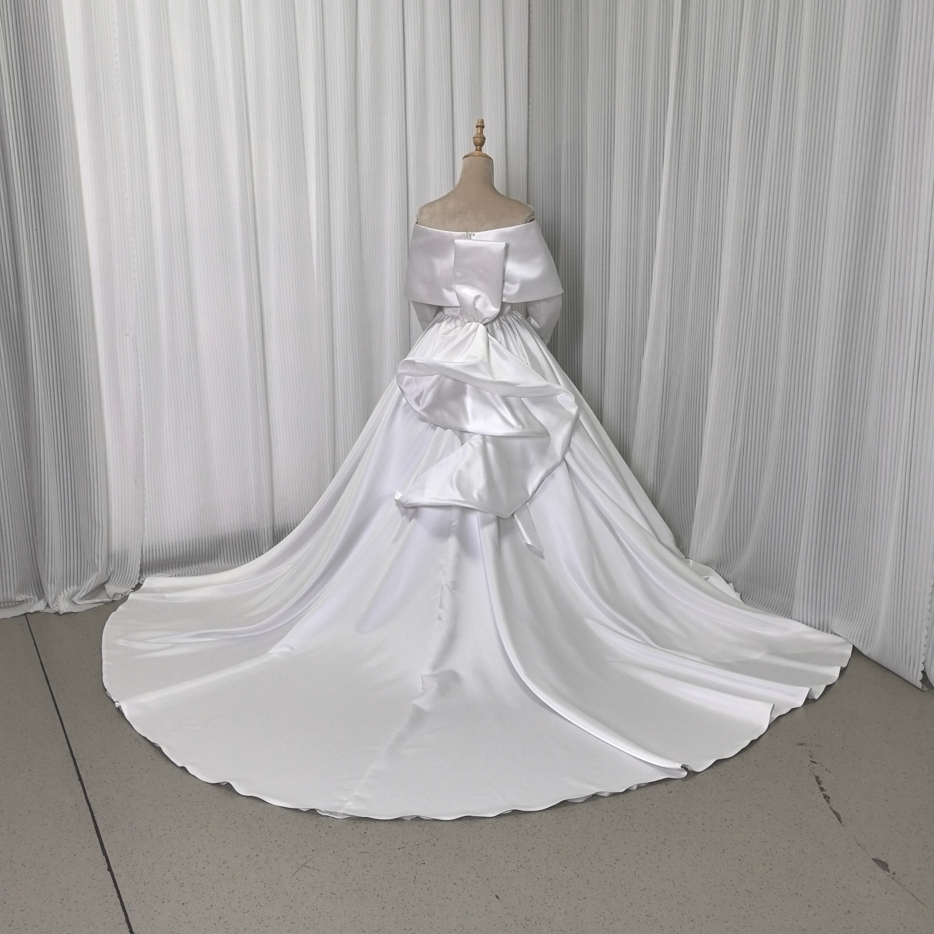 上品 ベアトップ ウエディングドレス ふっくら柔らかなバックリボン 華やかなトレーン+オフショルダー トップス